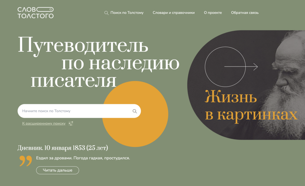 В ноябре команда Tolstoy Digital запустила проект «Слово Толстого» — цифровой путеводитель по наследию писателя, созданный на основе 90-томного собрания сочинений. Еще 10 лет назад доступ к полному собранию Льва Толстого был лишь у редких обладателей 90-томника. С 2013 года, после запуска проекта «Весь Толстой в один клик», тексты томов появились в свободном доступе в электронном виде. В 2022 году, после восьми лет работы, команда Tolstoy Digital выпустила семантическое издание собрания сочинений Толстого.