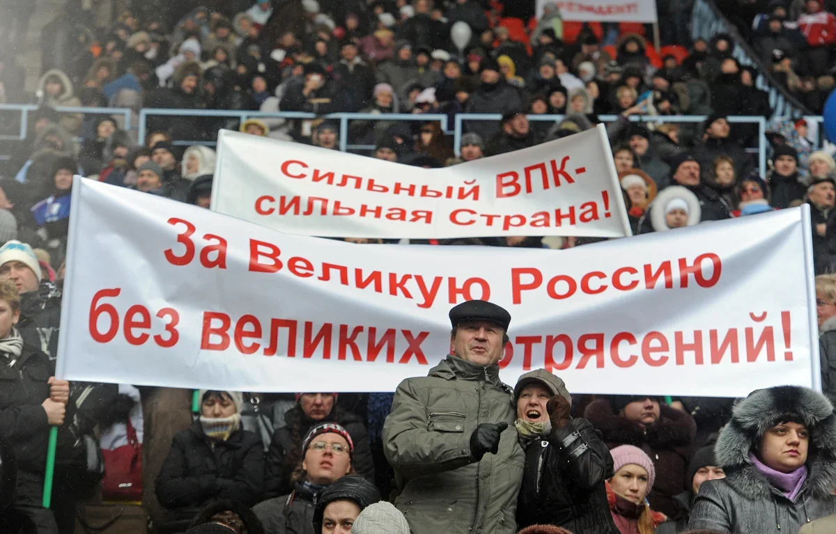 Но гораздо важнее — грубый обман, не замеченный и не понятый толпой, которую привезли в Лужники на автобусах вовсе не сражаться; их задача была лишь махать флажками и кричать «Дааа!». Согласитесь, когда тебе ничего не грозит, восторженно кричать проще, чем идя в штыковую атаку.