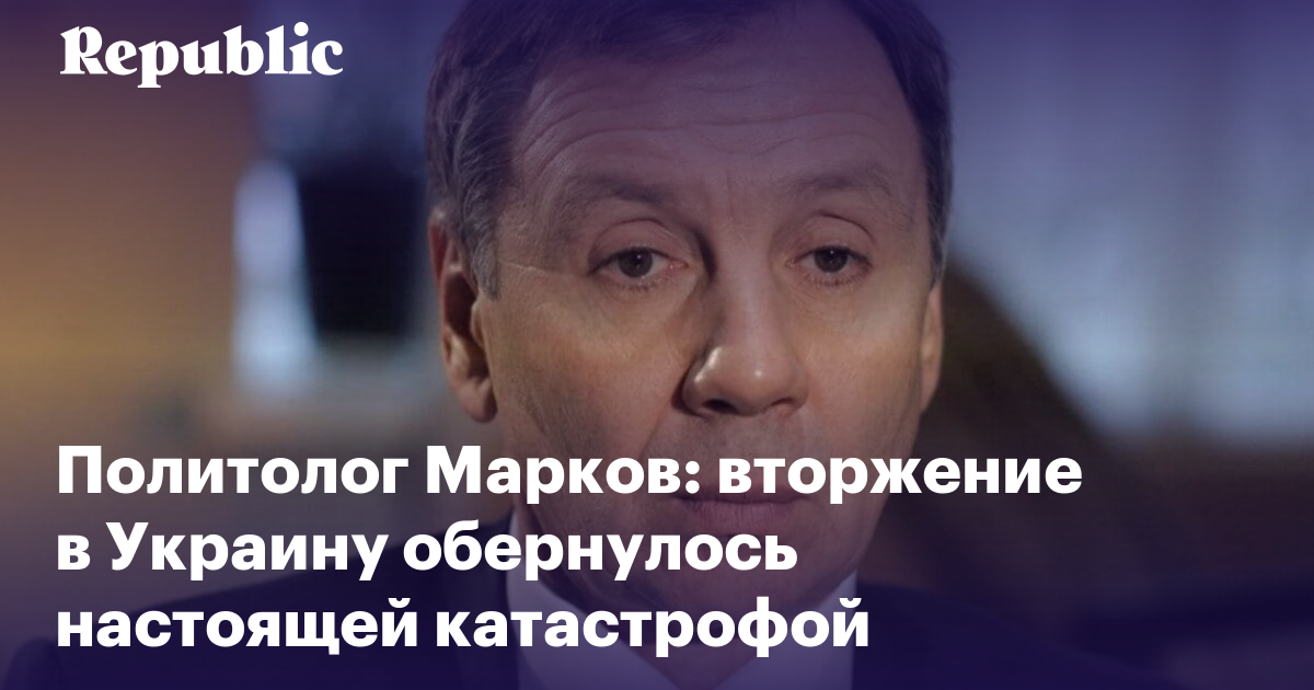 Российское вторжение в Украину обернулось настоящей катастрофой. Кремль и Минобороны допустили огромное количество ошибок, но продолжают твердить, что «все идет по плану», и это вызывает ненависть у населения. Война затронула десятки миллионов российских семей, жить стало гораздо сложней, а с Россией больше никто в мире не хочет дружить — она фактически стала изгоем. С такими откровениями выступил прокремлевский политолог, доверенное лицо Владимира Путина Сергей Марков, которого считают одним из ответственных за идеологию «Единой России». В большом интервью изданию «Бизнес Онлайн» он высказал мнение, что если Россия проиграет, то война перейдет на ее территорию. По его словам, возникла реальная угроза оккупации РФ, насильственной смены власти и разделения страны на несколько частей вплоть до полного краха. Republic приводит самые значимые цитаты из интервью.