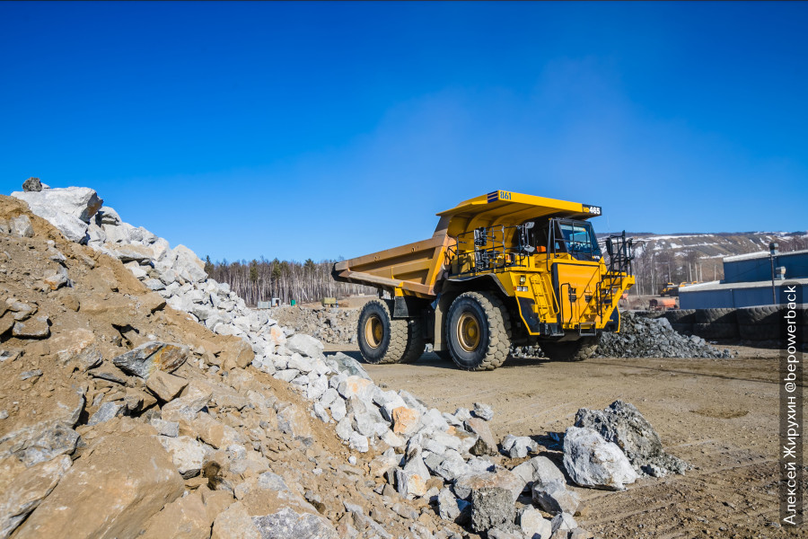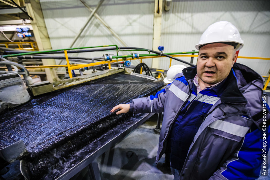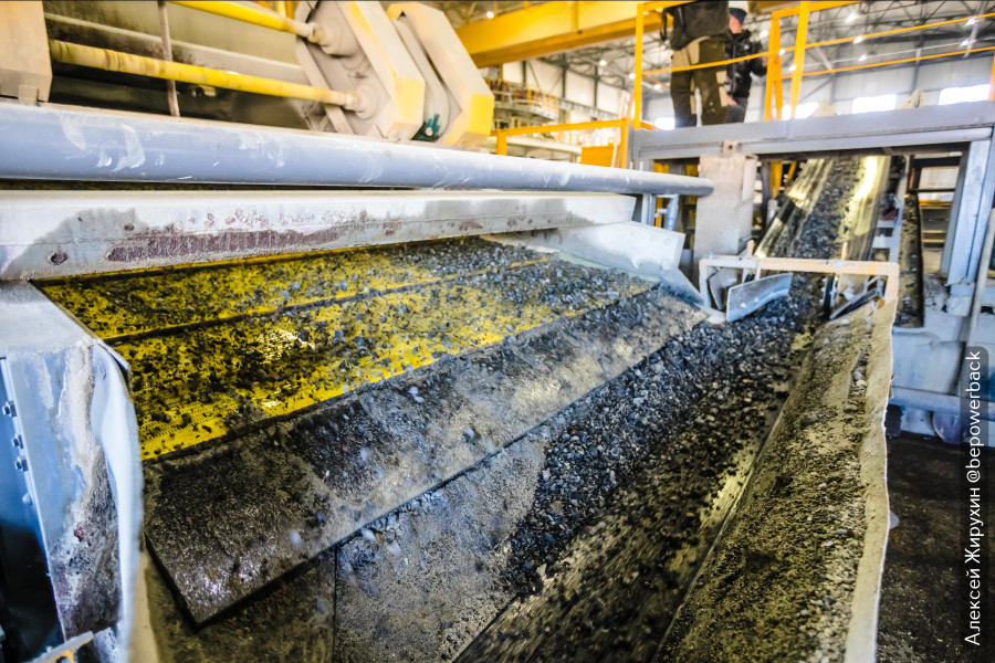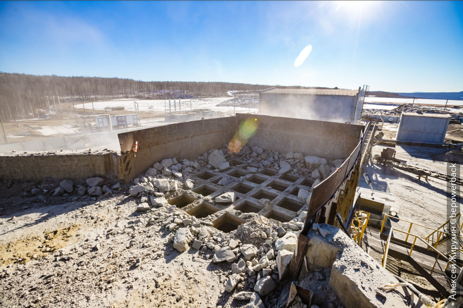 Один такой карьерный самосвал везет 55 тонн породы, и в ней содержится всего 50 граммов золота, которые еще нужно извлечь. В этом нам поможет золотоизвлекательная фабрика.