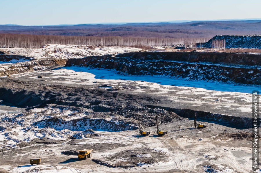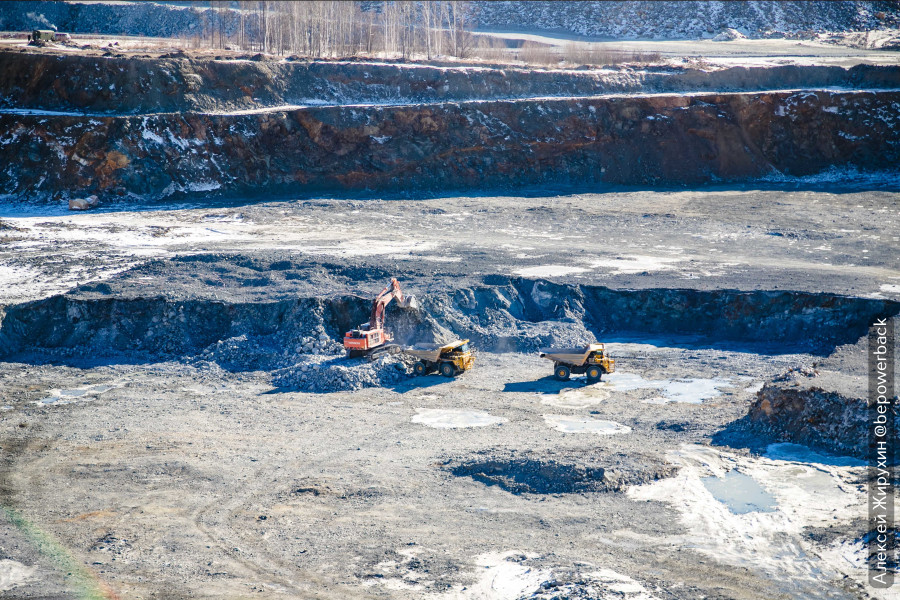 После этого экскаваторы начинают грузить в самосвалы разрыхленную породу.
