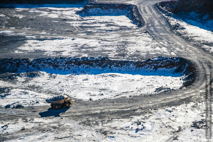 Дальше едем на другой карьер, где посмотрим третий способ добычи — тоже карьерный, но уже рудного золота. Это золото, находящееся внутри твердых пород в виде сростков с другими минералами.