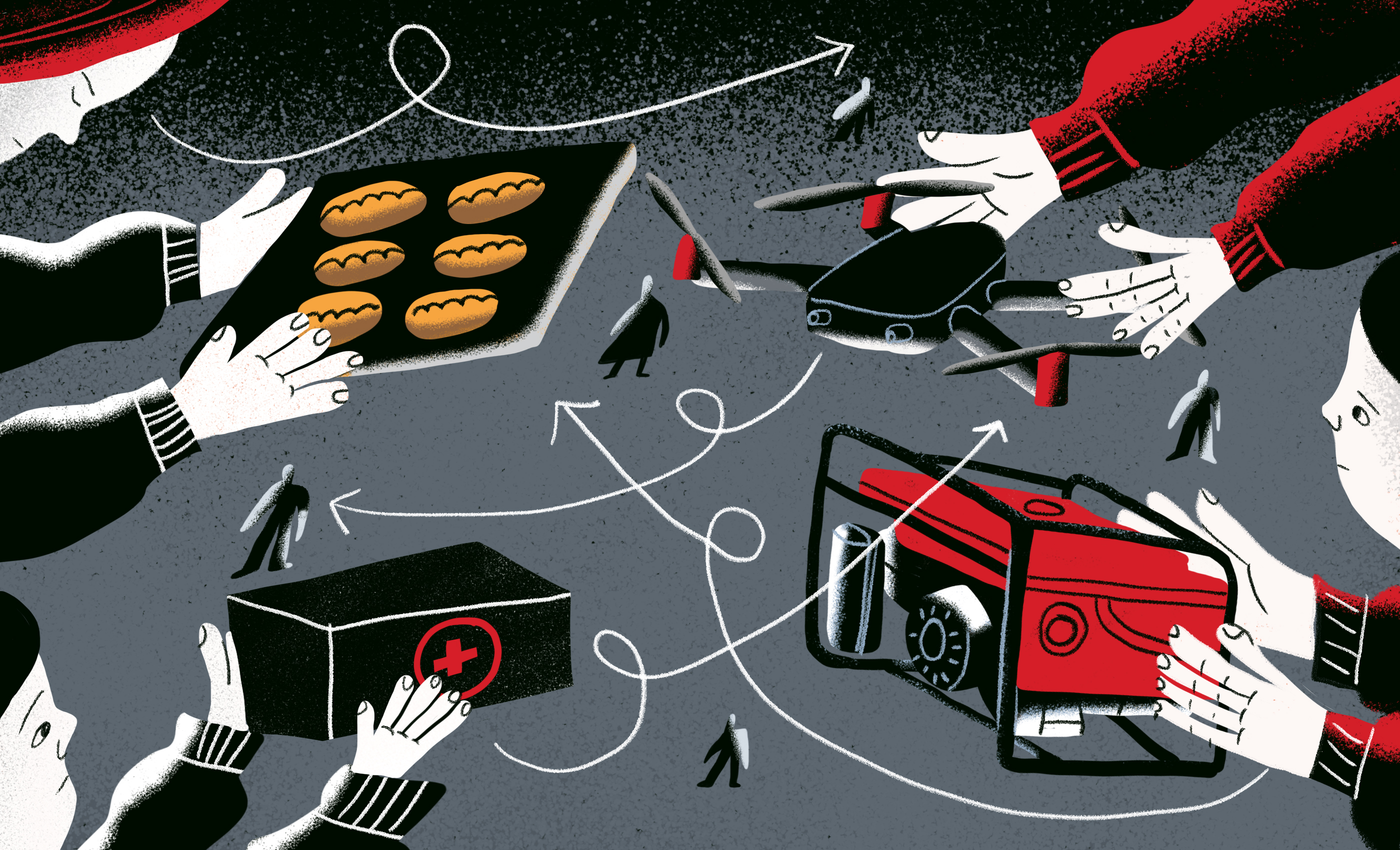 Тысячи небольших организаций и групп друзей, одновременно помогающих мужчинам и женщинам на фронте и оккупированных территориях… звучит как прямой путь к хаосу. Но поразительным образом это совсем не так. В Киеве Дмитрий Лисовой, занимающий высокий пост в Samsung, сказал мне, что четыре его школьных друга пошли добровольцами на фронт. Теперь у них есть групповой чат в Signal на 15 человек, из которого можно узнать, что нужно на фронте. Для одного из одношкольников Лисовой и его родители нашли через друзей друзей в Швеции полноприводную машину за пять тысяч евро — Дмитрий показал мне фотографию, где тот стоит рядом с этой машиной. Другому вскладчину купили дрон.