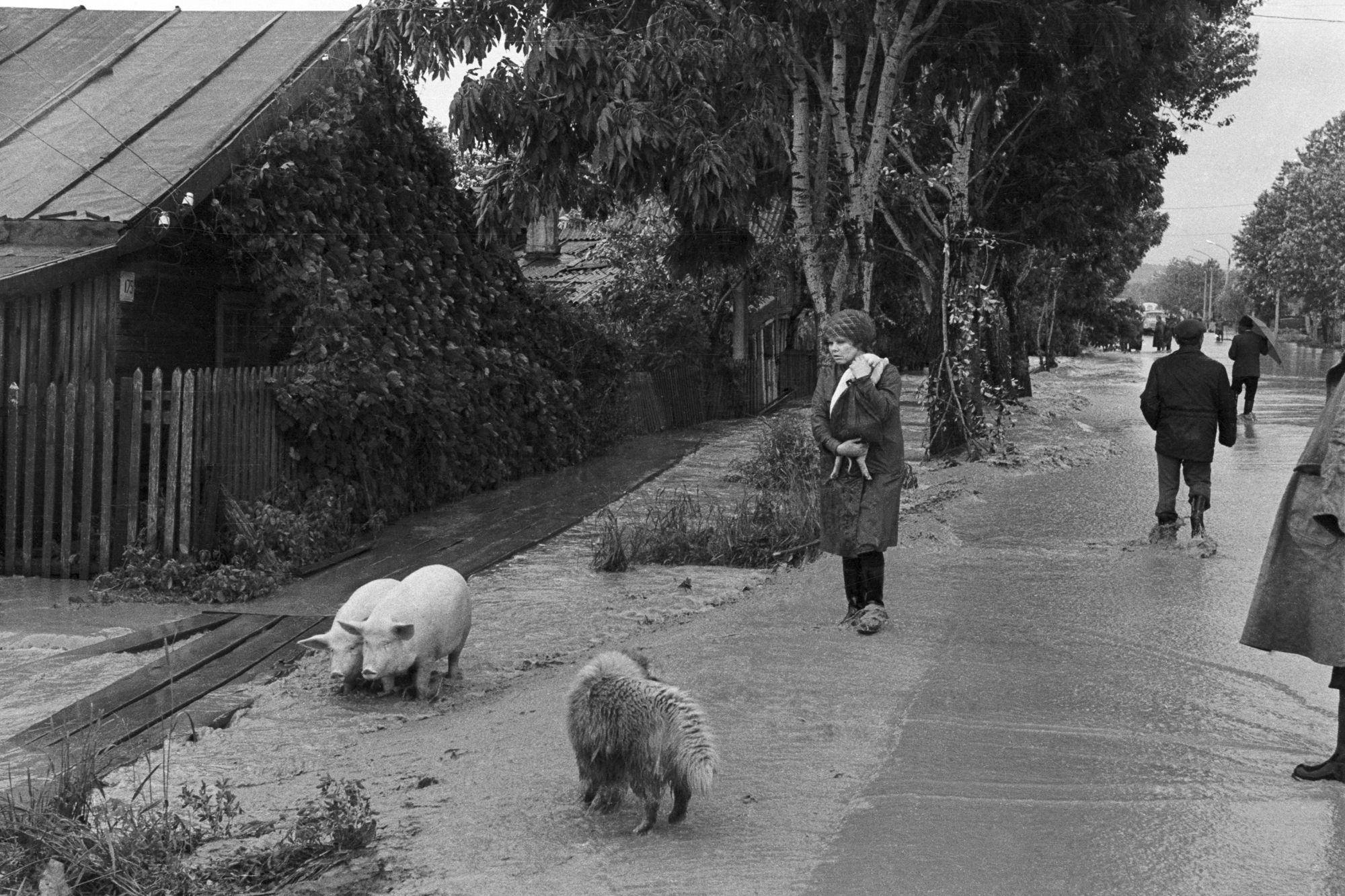 Гайворон ожидал увидеть семейную хронику, но, кроме нее, обнаружил снимки с демонстраций, сцены из сельской жизни. В мотках были даже кадры затопленного Южно-Сахалинска: люди передвигаются по улицам на лодках, экскаватор вылавливает ковшом из реки строительный мусор. Видно было, что автор – человек, умеющий выстроить кадр, а дело происходит в 1970–1980-х годах.