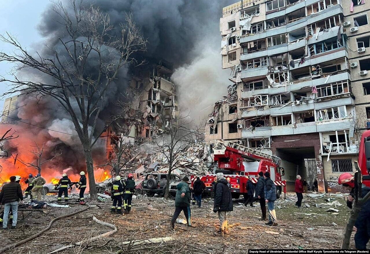 В результате обстрела Днепра разрушен многоэтажный жилой дом