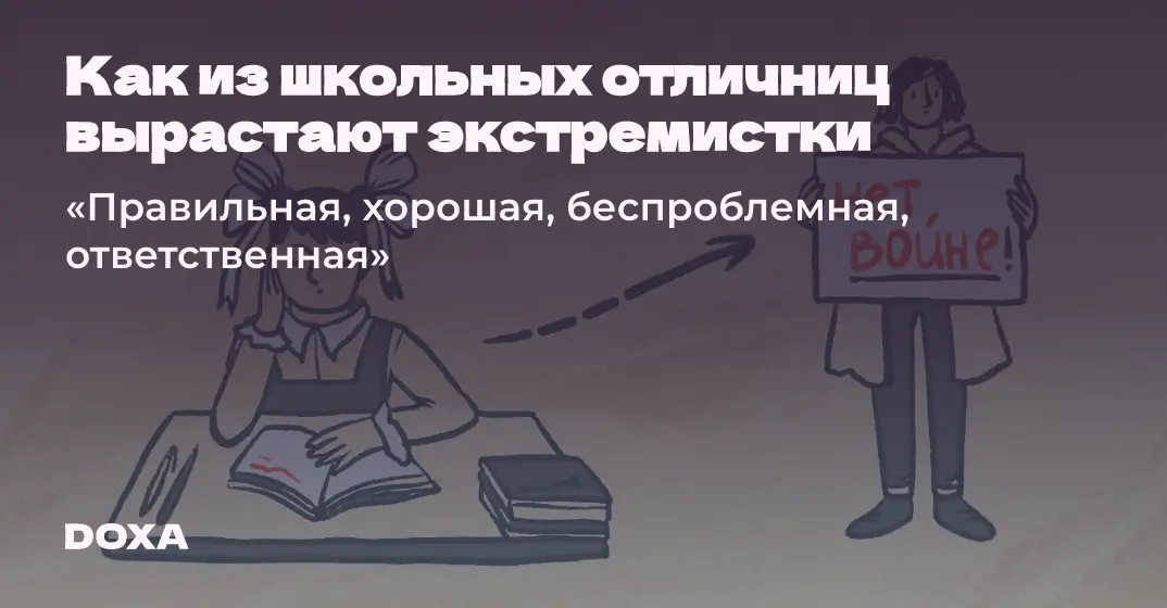 При этом я всё чаще думаю о том, как иронично, что образовательная система в России сформировала во мне прилежность и насколько этот навык последовательно влиял на мои политические взгляды. Именно поэтому я испытала недоумение, когда увидела слова депутата Василия Пискарева о том, что DOXA «вовлекает нашу молодежь в противоправную деятельность». Ведь я — тоже «ваша молодежь», выросшая в России. Когда в вузе мне предложили курсы по социальной теории, гендеру и политологии, я прилежно изучала их. А быть прилежной и впитывать программу меня научила школа. Спасибо классной руководительнице, которая боялась испортить рейтинг школы. Теперь я порчу рейтинг российских властей.