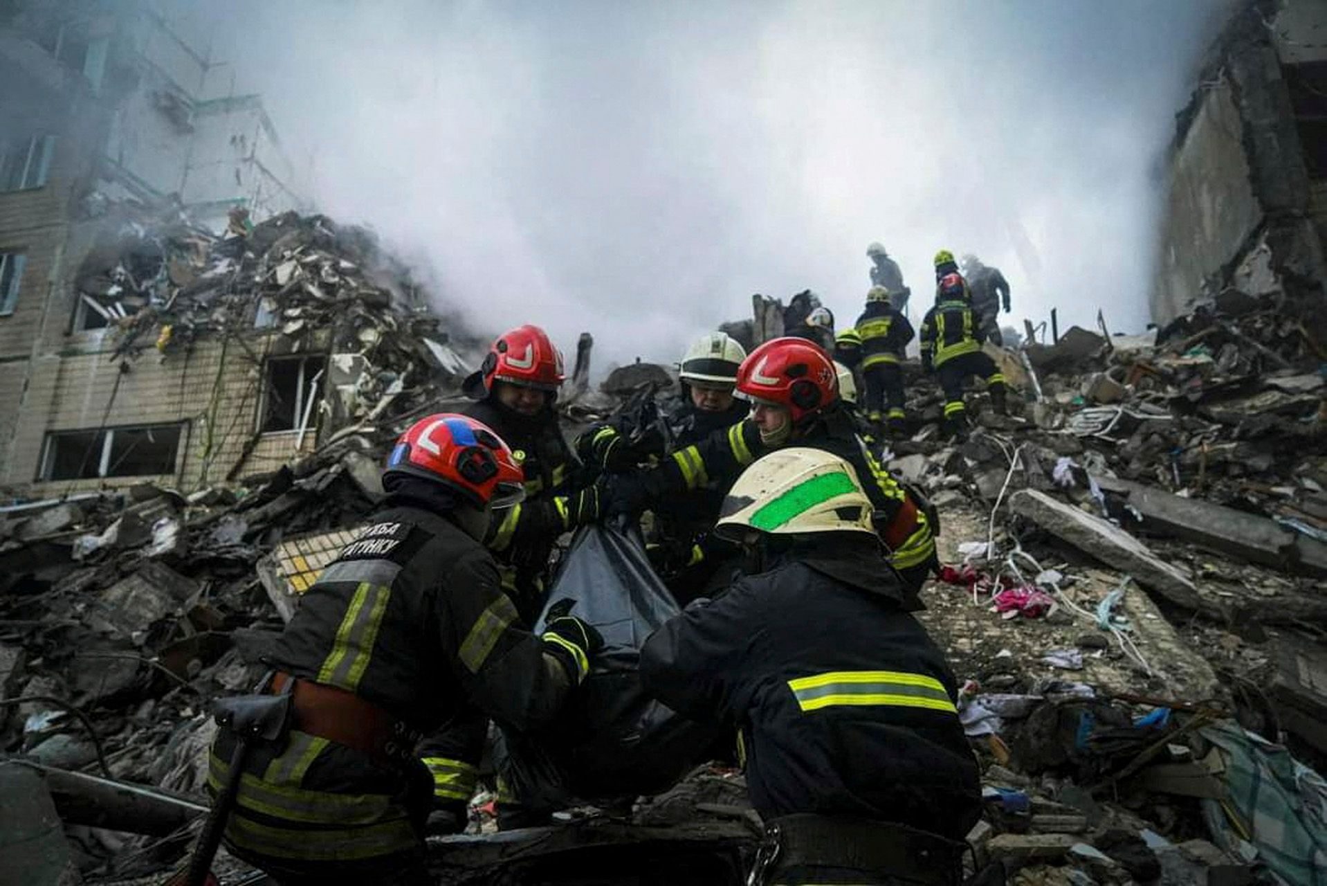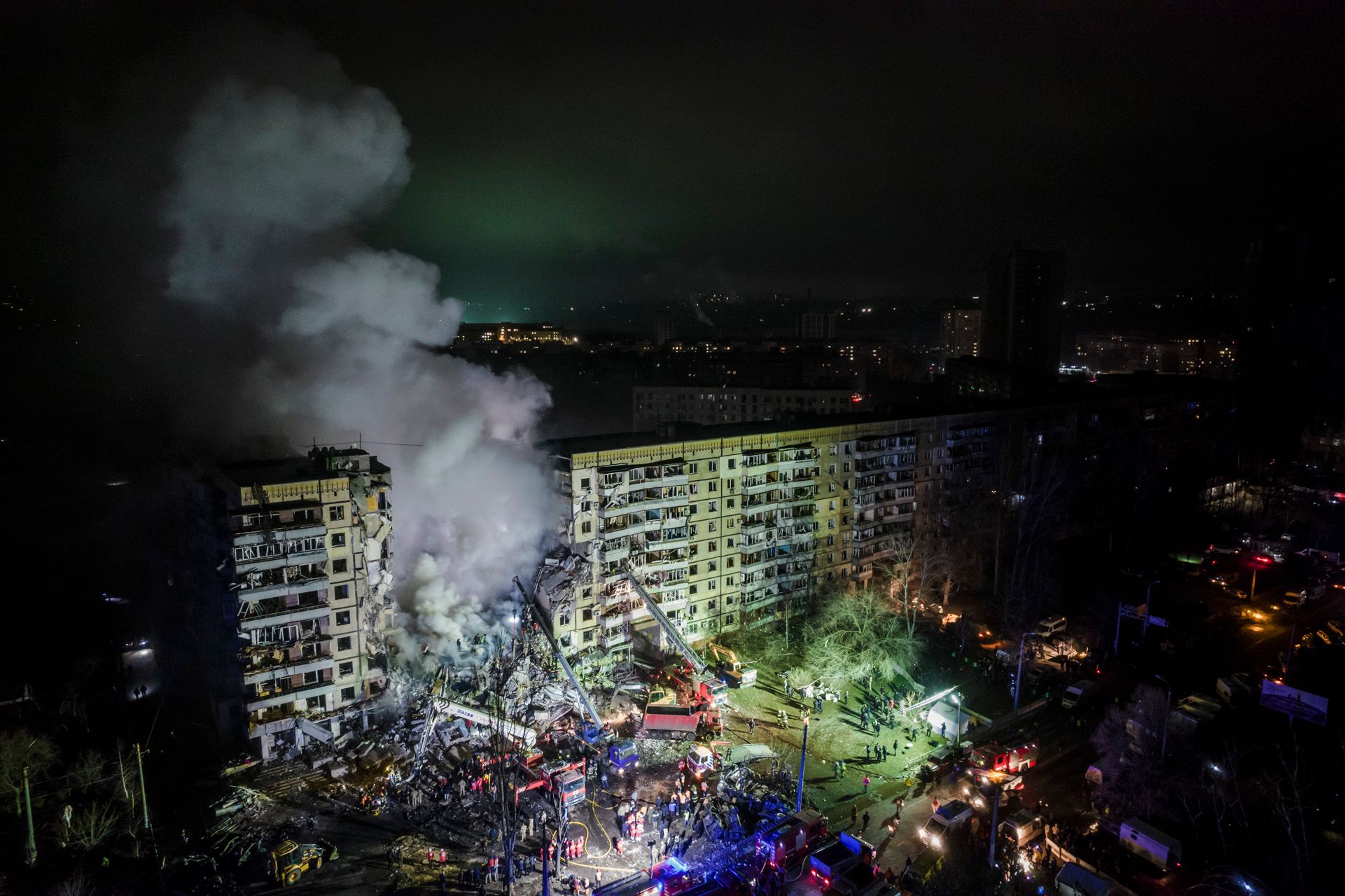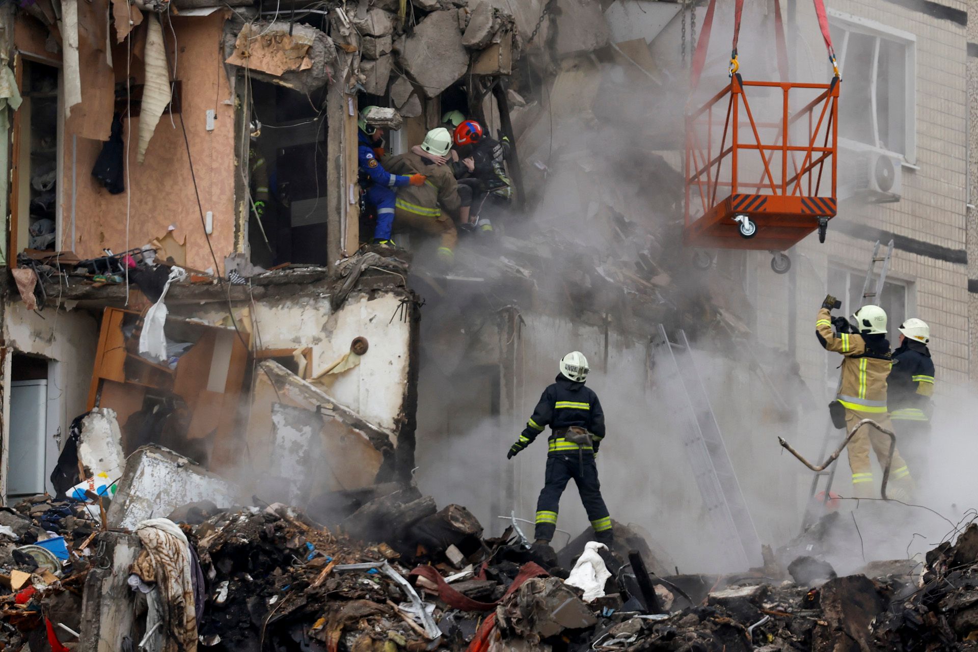 Clodagh Kilcoyne / Reuters / Scanpix / LETA Спасатели работают на месте взрыва ракеты, 14 января уничтожившей два подъезда девятиэтажного дома на набережной Победы в Днепре. По последним данным от властей Украины, погибли 35 человек, столько же считается пропавшими без вести, больше 70 ранены