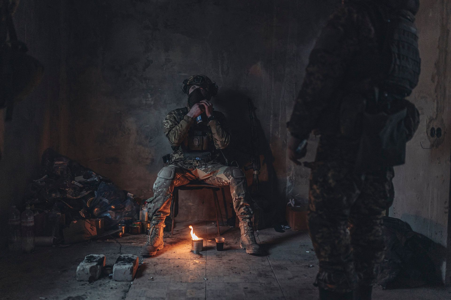Diego Herrera Carcedo / Anadolu Agency. / ABACAPRESS / ddp images / Vida Press Солдаты ВСУ греются от окопной свечи в заброшенном доме на линии фронта в Донецкой области