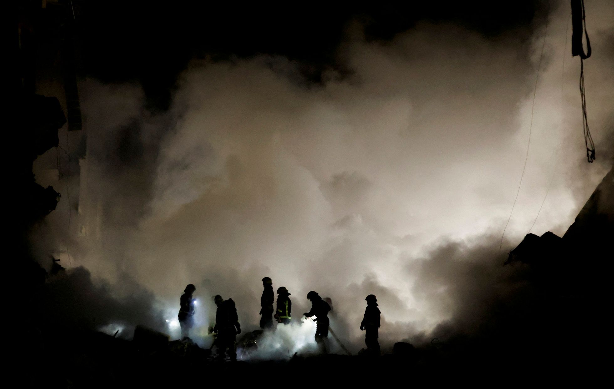 Mykola Miakshykov / Укринформ / SIPA / Scanpix / LETA Спасатели разбирают завалы на месте обрушившихся подъездов девятиэтажки в Днепре