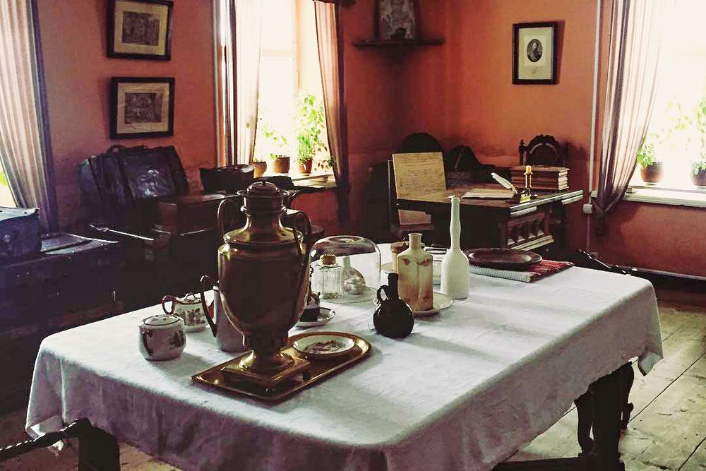 Именно этой концепции следует основная экспозиция в главном корпусе. Она занимает три комнаты. Например, в комнате Дуняши — дочери станционного смотрителя — можно увидеть недошитый сарафан, вышивку на пяльцах и украшения, а в комнате смотрителя — самовар и старинные часы.