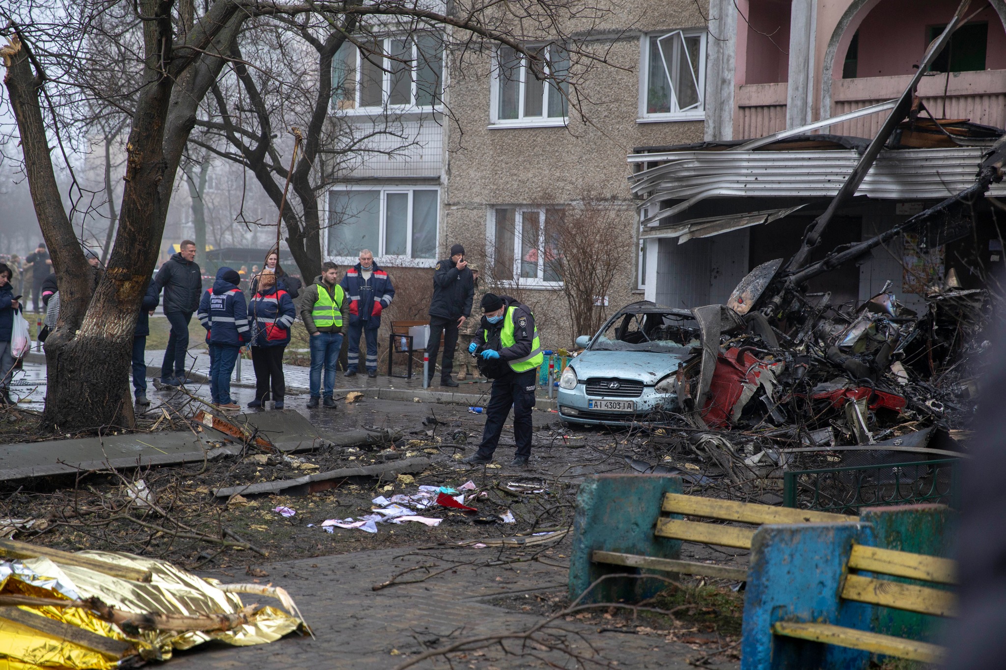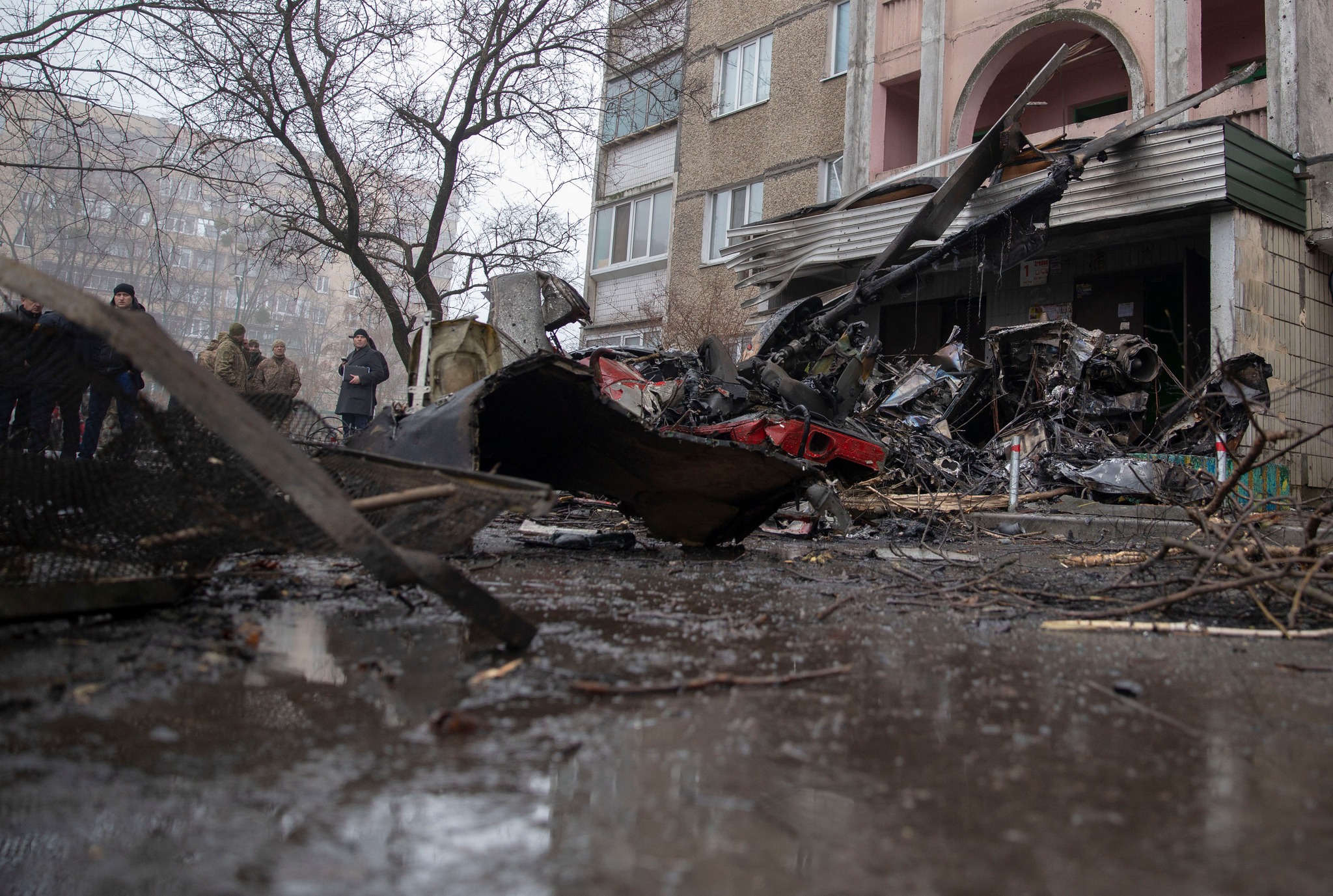 На борту разбившегося утром 18 января вертолета находилось девять человек, среди которых руководство Министерства внутренних дел, а именно: министр Денис Монастырский, его первый заместитель Евгений Енин и государственный секретарь Юрий Лубкович. Они, а также еще трое сотрудников оперативной группы министерства и три члена экипажа погибли.