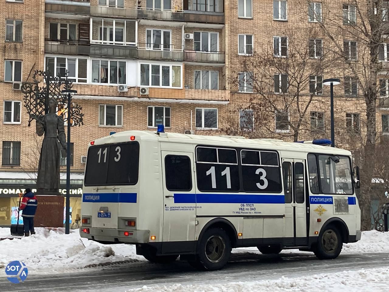 Утром 18 января у памятника Лесе Украинке начал дежурить полицейский автобус, сообщило издание Sota.