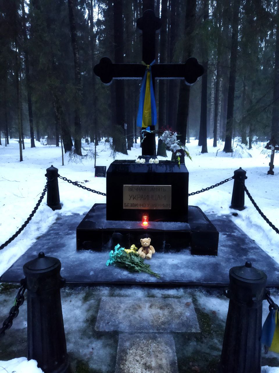 Петербуржцы также возложили цветы к первоначальному месту захоронения Тараса Шевченко на Смоленском кладбище и к памятникам жертвам политических репрессий ​​на Левашовском мемориальном кладбище 18 января.
