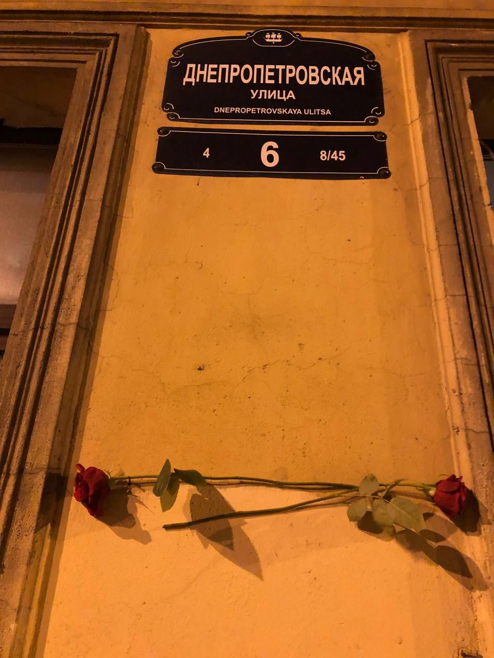 Вечером 17 января жители Петербурга оставили две розы на Днепропетровской улице в Центральном районе, заметили читатели «Бумаги».
