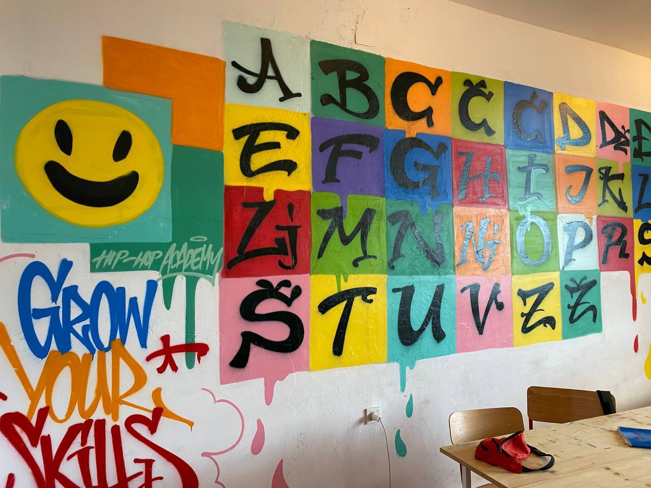 Черногорский алфавит от черногорского граффитиста, подарок школе на первое сентябряФото: из личного архива героини У каждого ученика на школьной стене теперь есть свой небольшой рисунок и тег, нанесенный собственноручно. Мы посадили в школьном дворе апельсиновое дерево. Мы точно знали, что нам тут «жить» и то пространство, которое мы создадим, станет для нас «домом». А так как мы всё потеряли, душевные силы были брошены на то, чтобы нам тут стало хорошо. Так и случилось.