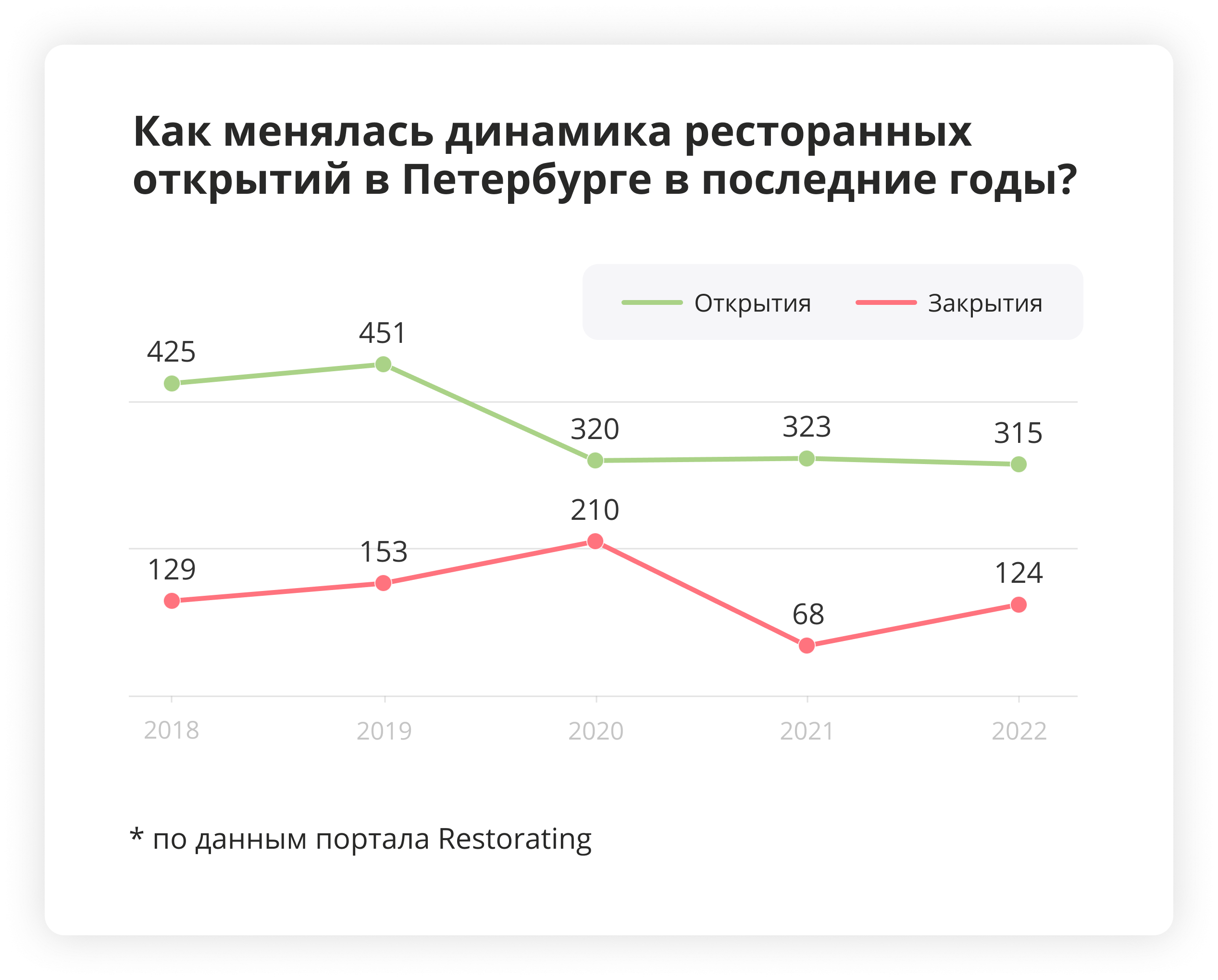 Динамика ресторанных открытий и закрытий за последние 5 лет — в инфографике «Бумаги» на основе данных портала Restorating.