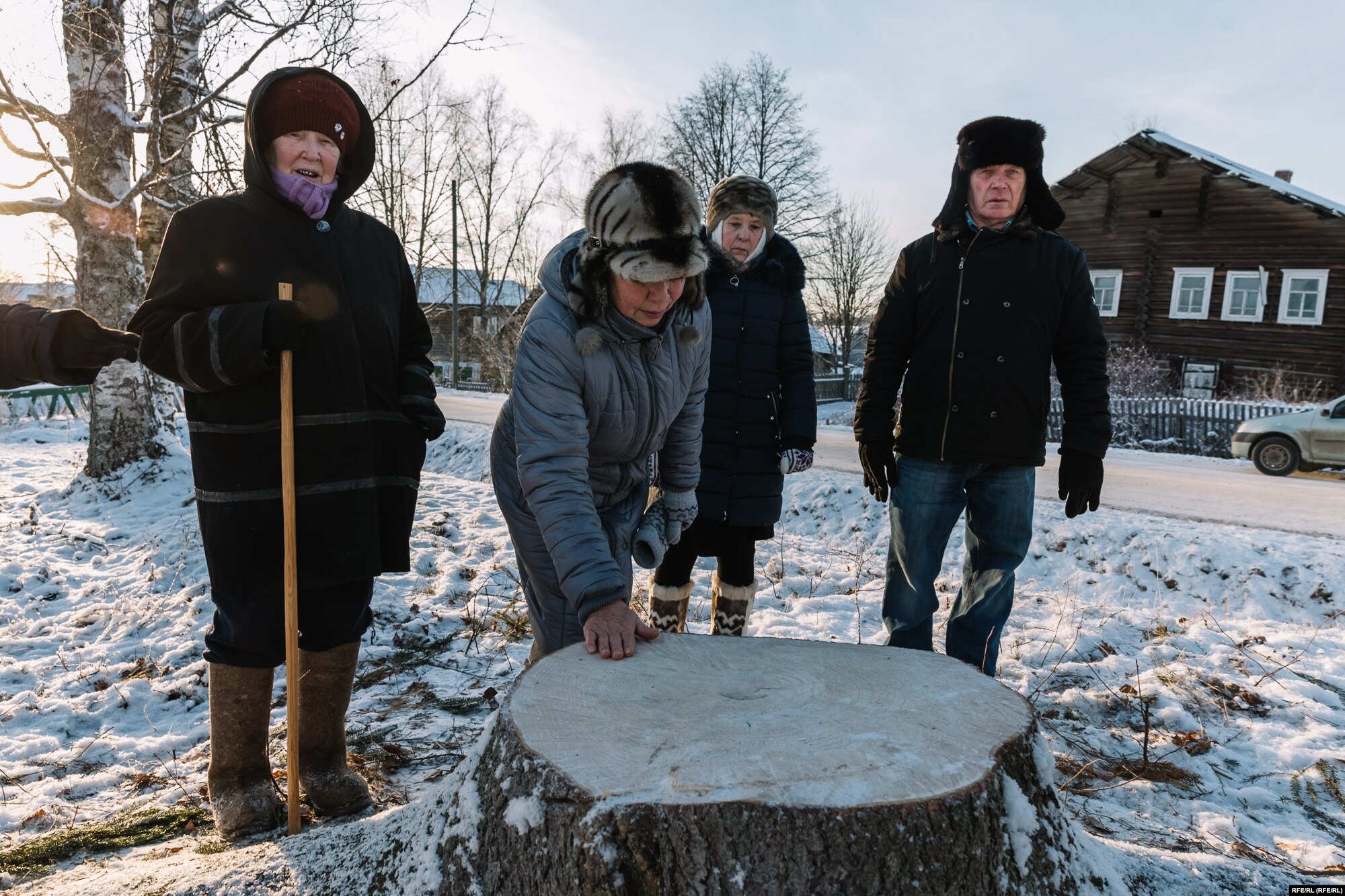 Срубленная ель росла около памятной стелы участникам Второй мировой войны. Несколько десятилетий назад жители села высадили здесь аллею из сосен и берез. А потом рядом посадили и ель. Дерево "исчезло" без ведома местных жителей.