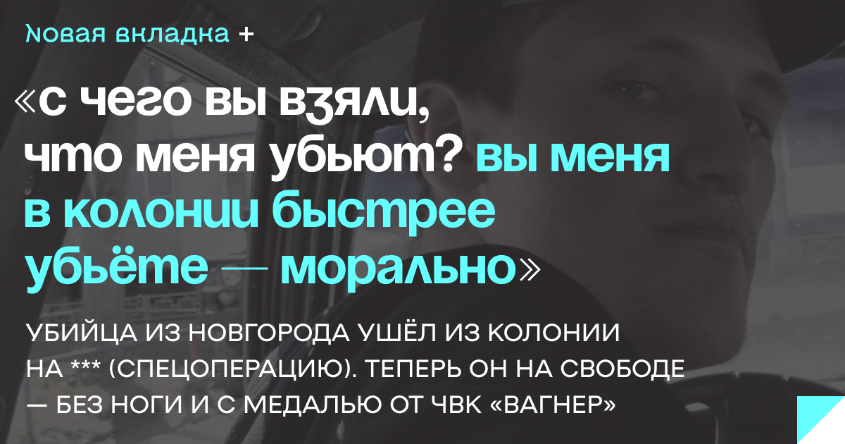 Убийца из Новгорода ушёл из колонии на спецоперацию. Теперь он на свободе — без ноги и с медалью от ЧВК «Вагнер». Мы с ним поговорили