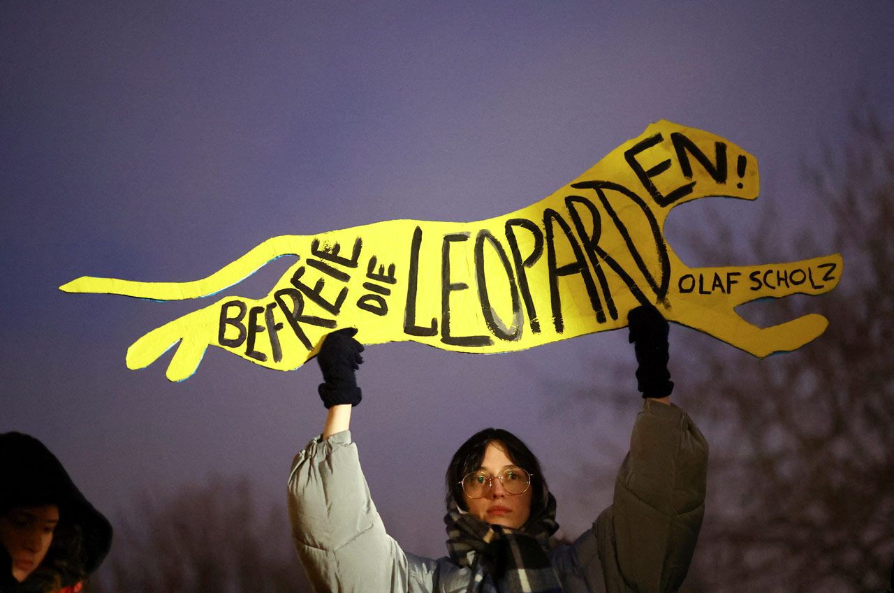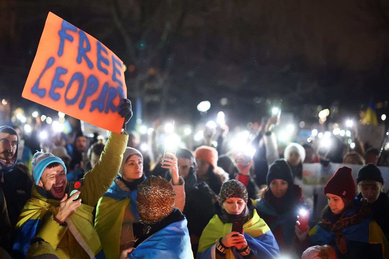 В Берлине вечером 20 января у здания прошла акция, участники которой потребовали от властей Германии пересмотреть решение по танкам Leopard 2 и все-таки предоставить их Украине. Среди участников акции было много украинцев, которые переехали в Германию.