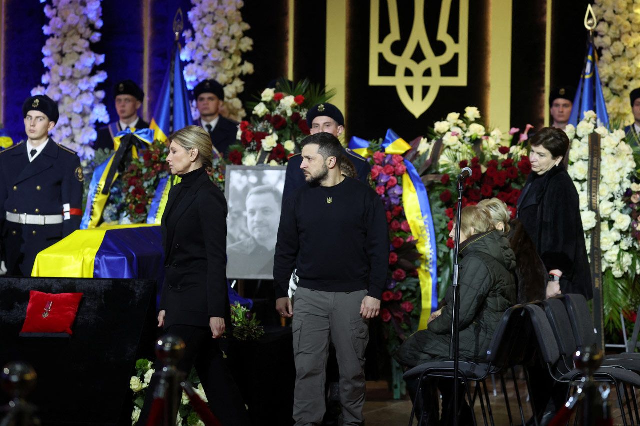 На церемонию прощания с министром внутренних дел Украины Денисом Монастырским и другими сотрудниками МВД, погибшими при крушении вертолета в Броварах, пришли Владимир и Елена Зеленские, а также глава офиса президента Украины Андрей Ермак.