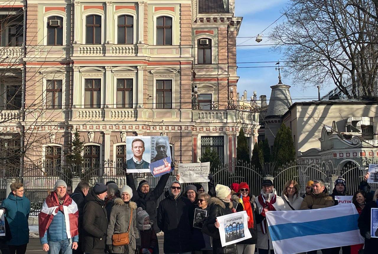 В Риге на акцию в поддержку Навального и российских политзаключенных у посольства РФ собрались несколько десятков человек.