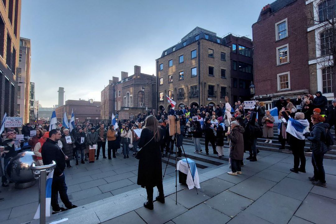 Митингующие собрались около здания театра Kulturhuset Stadsteatern. С собой они принесли украинские и антивоенные российские флаги, а также плакаты с названиями и фотографиями разрушенных городов Украины. На видео, опубликованном Sotavision, музыканты играют песню «Мы идем в тишине» группы «Гражданская оборона».