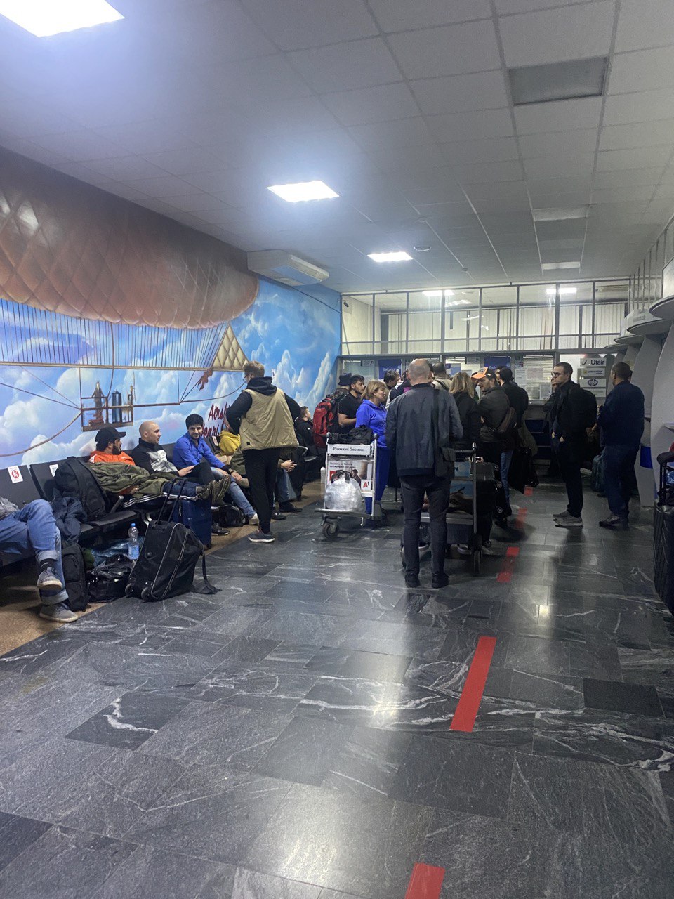 При вылете в Белоруссию в аэропорту паспорт у Александра тщательно проверяли, но в итоге все же пустили в самолет. В Минске очереди на прямые рейсы из России уже дожидались около 300 россиян. Практически все зарубежные рейсы из белорусской столицы летели через Москву, и на них никто не хотел садиться, прямых рейсов было три в неделю. В аэропорту была очередь из соотечественников, желающих уехать.
