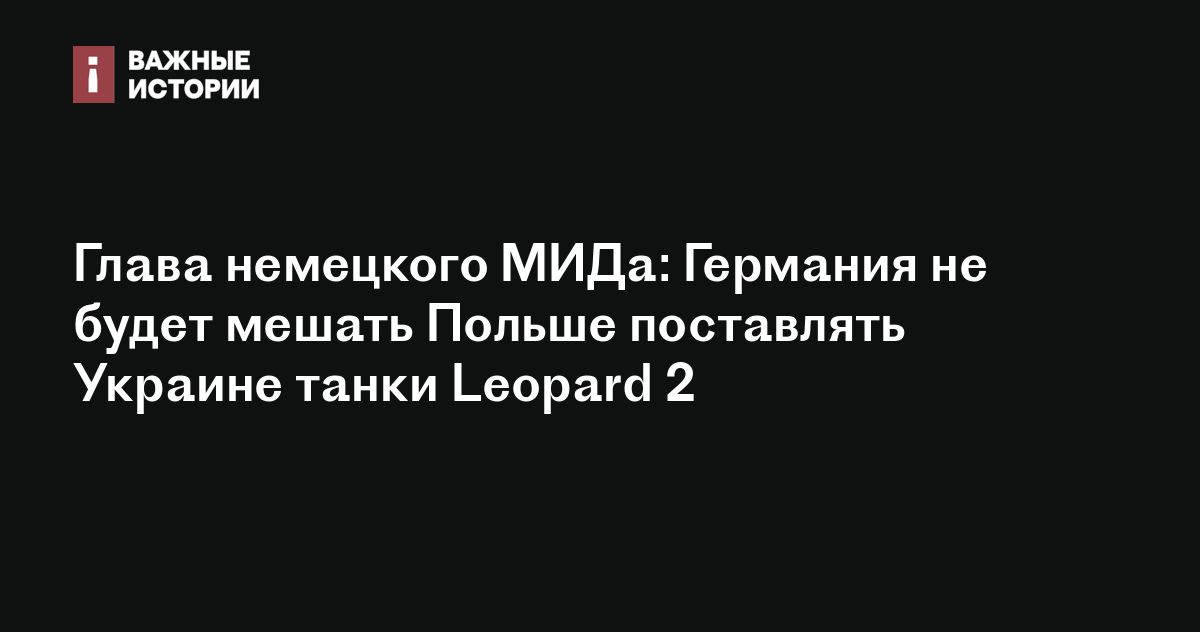 Глава немецкого МИДа: Германия не будет мешать Польше поставлять Украине танки Leopard 2