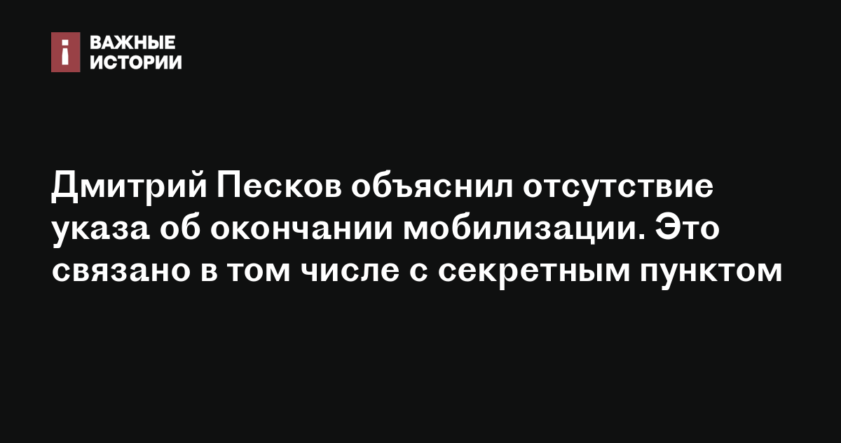 Дмитрий Песков объяснил отсутствие указа об окончании мобилизации. Это связано в том числе с секретным пунктом