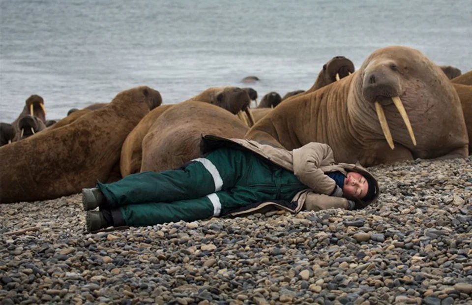 Главное событие для соотечественников — выдвижение картины якутских авторов Максима и Евгении Арбугаевых «Выход» в категории «Лучший короткометражный документальный фильм». Незабываемая картина, в том числе и по киноязыку. Тревожное, темного серебра изображение. Серое небо, серое море. На пустынном побережье российской Арктики — одинокий человек в старой хижине у Чукотского моря. Это Максим Чакилев, морской биолог. Вокруг — дикая неласковая природа. И ожидание встречи. Однажды утром он пытается выйти и не может. Дверь приперта снаружи. Это моржи. Их десятки тысяч. Максим лезет на крышу и докладывает о том, что около 95 тысяч моржей вышли из моря на побережье. Что лед в море отсутствует полностью. Трагический экотриллер, в котором — смерть и стон. Гигантская трагедия, вызванная климатическим потеплением. Трагедия, до которой человечеству нет дела. Оно занято тем, что истребляет себе подобных. Здорово, что якутское кино так мощно и разновекторно развивается.