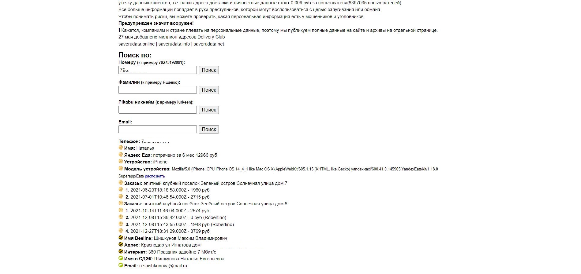 По этому адресу, кстати, заказывала доставку еды жена Максима Шишкунова, Наталья. На номер мужа она зарегистрировала аккаунт в «Яндекс.Еде».