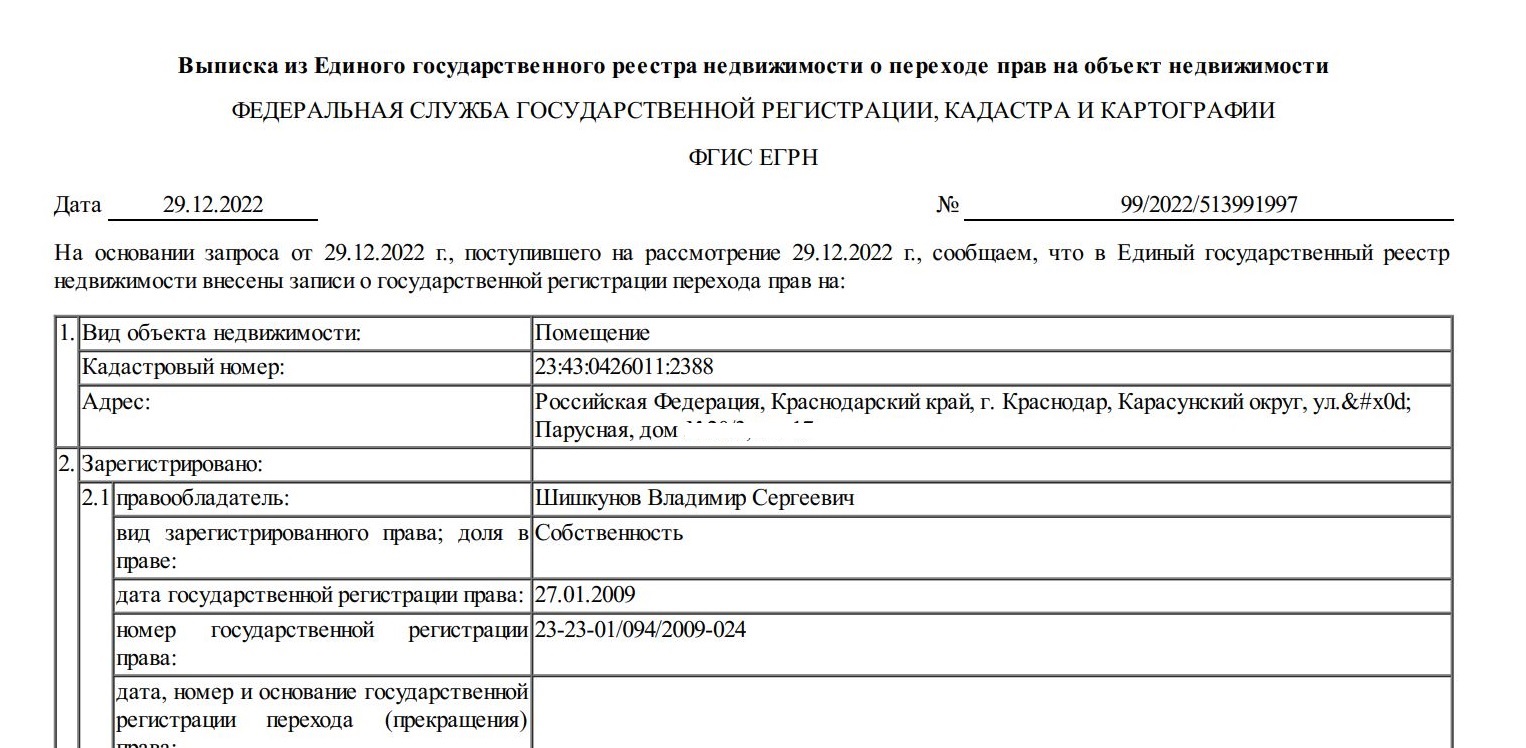 Владения семейства Шишкуновых домом на острове не исчерпываются. Владимиру Шишкунову с 2009 года принадлежит квартира в Краснодаре в микрорайоне Гидростроителей на улице Парусной — её площадь почти 70 квадратных метров. Стоимость этой квартиры мы оцениваем минимум в пять миллионов рублей.