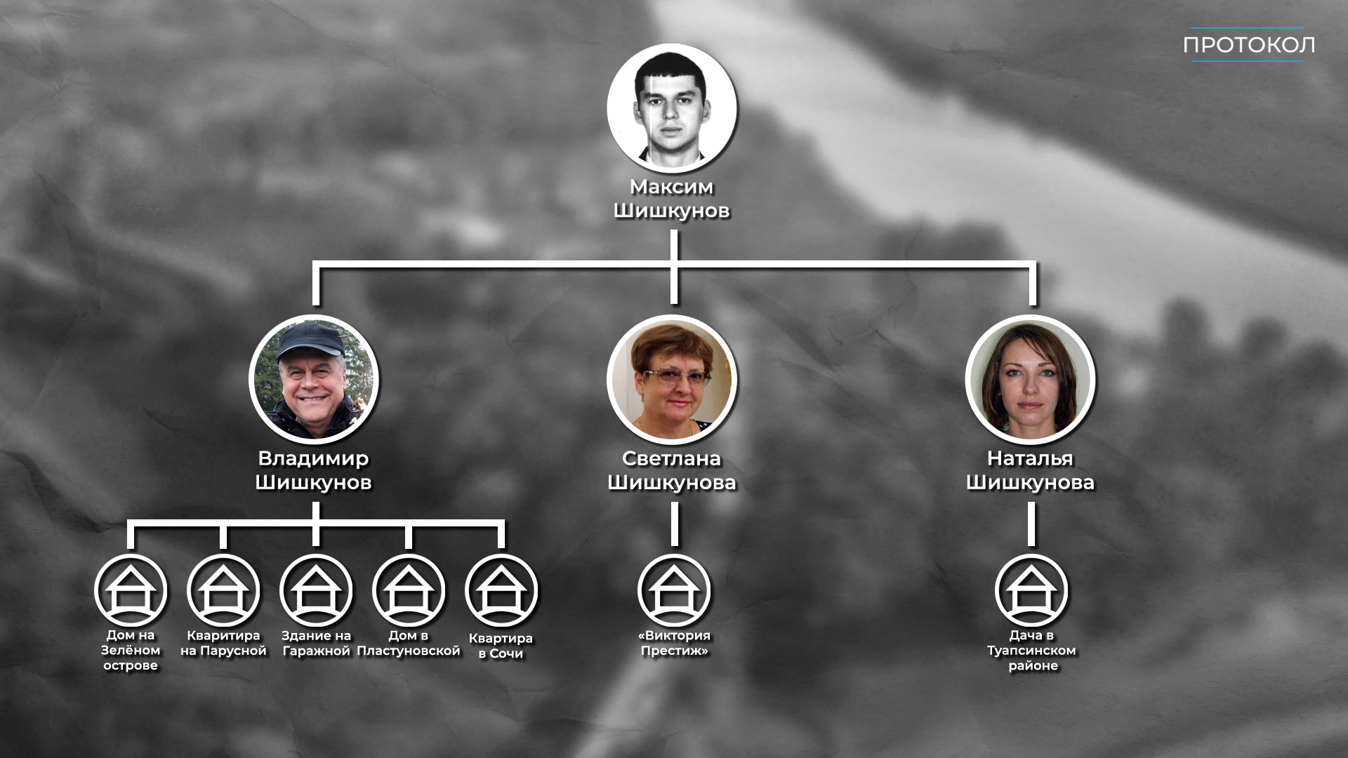 Учитывая, что кто-то записал номер Шишкунова-младшего как «Максим Козет», можно смело предположить, что отец чекиста — номинальный держатель активов сына. Мать Максима Шишкунова, Светлана, тоже не засветилась в управлении бизнесом. Жена чекиста, Наталья Шишкунова, была учредителем одной общественной и одной коммерческой организаций, не отличавшихся финансовой успешностью. Шишкунов-старший мог накопить около 130 миллионов рублей на выкуп недвижимости по всему Краснодарскому краю и Адыгее.