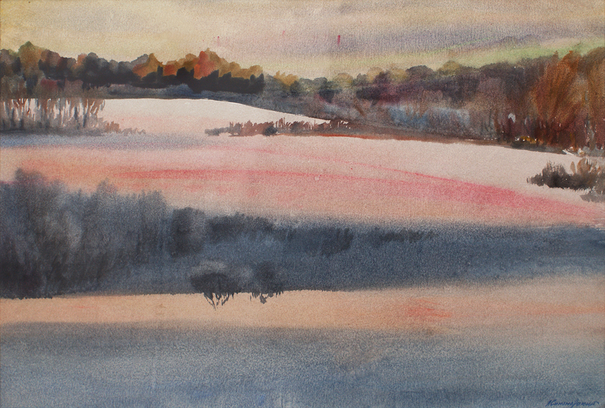 – Он всю жизнь писал акварели на гознаковской бумаге, на больших форматах, – говорит сын Леонида Мееровича Николай Симоновский. – Потом я стал помогать ему устраивать выставки. Его акварели – это антитеза и официозному искусству, и тому ужасу, через который он прошел в детстве, это его параллельная вселенная – не просто красоты, а Земля, планета, жизнь.