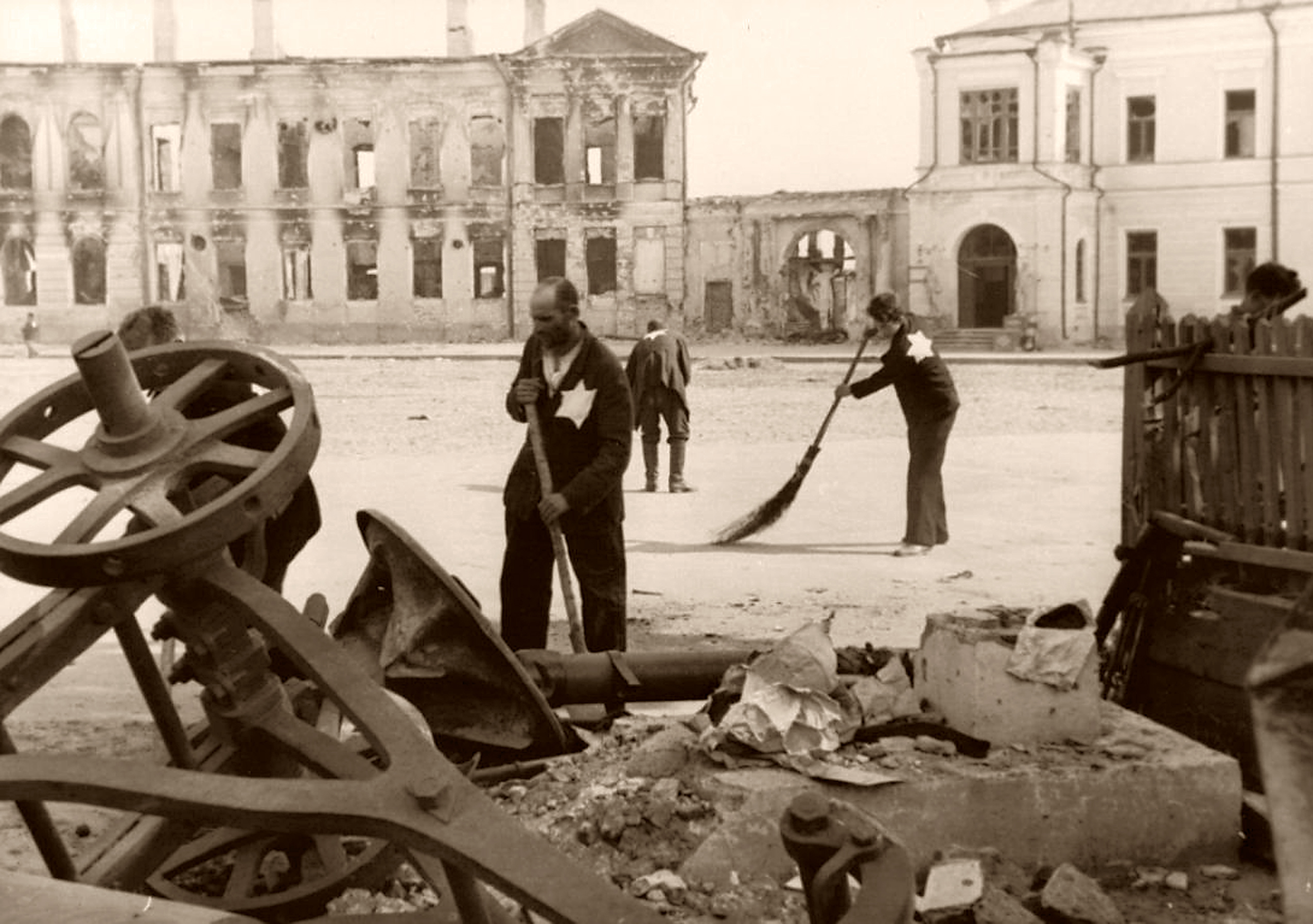 – Там поселились немцы, и я заметил, что первым входом пользуются немецкие офицеры, а вторым никто не пользуется. И я осмеливался туда проходить. Там была лестница, разрушенная бомбой, от нее осталась висеть большая рельса, тянувшаяся до самого верха, и я по ней забирался. Там была теплая куча угля – немцы снизу топили, и она нагревалась, там я ночевал недели две. Еще в городе был барак, все его звали "дом 90", где можно было переночевать, но там по ночам бывали облавы – немцы приезжали и забирали парней, которые постарше. Рассказывали, что у них брали донорскую кровь – во всяком случае, я их больше не видел. А еще среди мальчиков и девочек были такие, которые бегали за немцами и говорили – "Пан, юде – бон-бон", это значит – пан, дашь конфетку, покажу, где прячется еврей. И вот, однажды я там ночевал, просыпаюсь, а моих маленьких детских сапог нет. Мне сказали – рядом с тобой был цыган, он их унес, ищи ветра в поле.