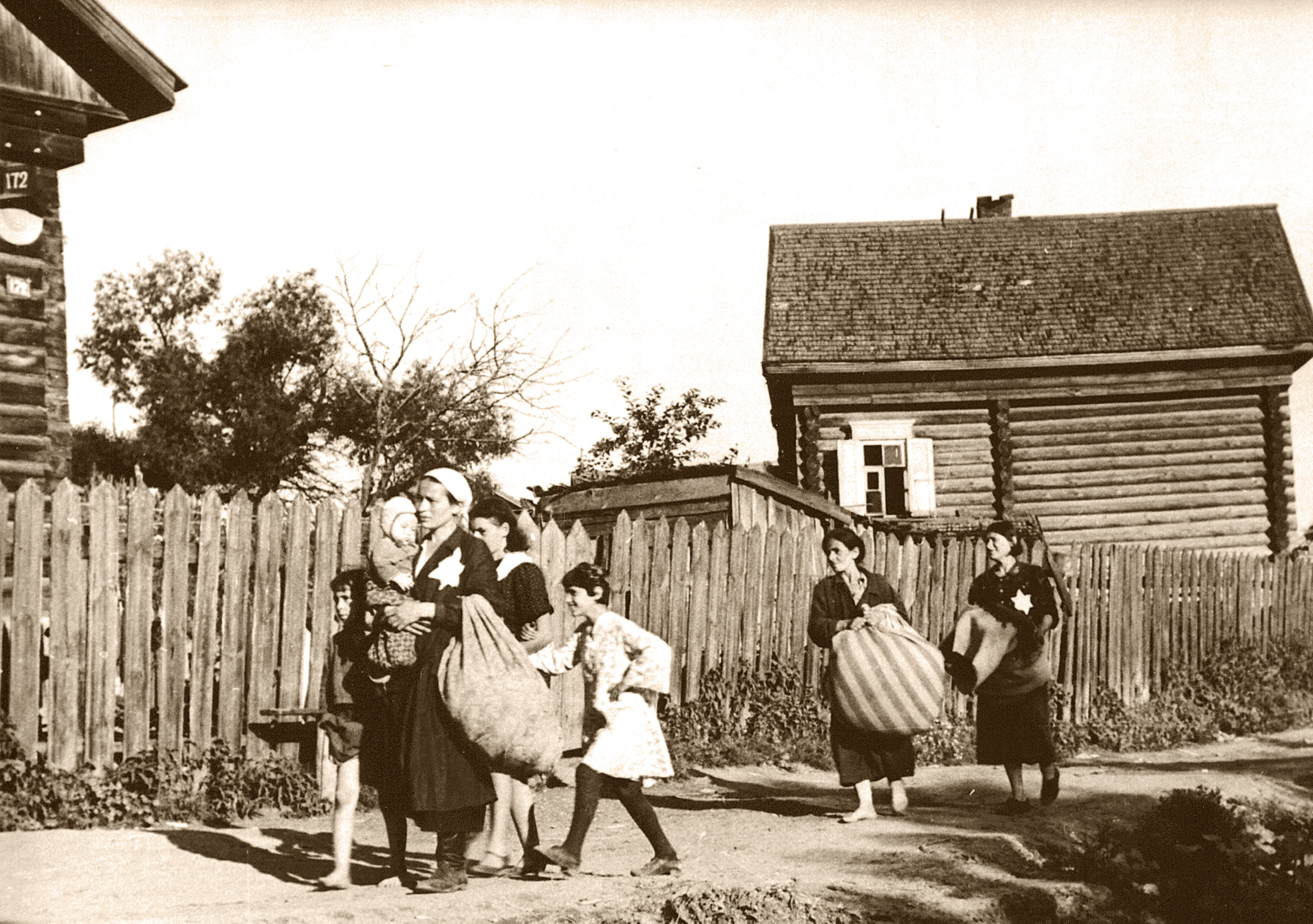 Мы в первый день не поехали, думали, вдруг обойдется. Но все равно пришлось ехать – на второй или третий день. Парни из полиции регулировали переселение – у Дубровинки и у вокзала. У нас там жили родственники, мы поселились в их доме. Это было одноэтажный деревянный барак, мы заняли заднюю комнату – всей семьей, кроме сестры Фиры.