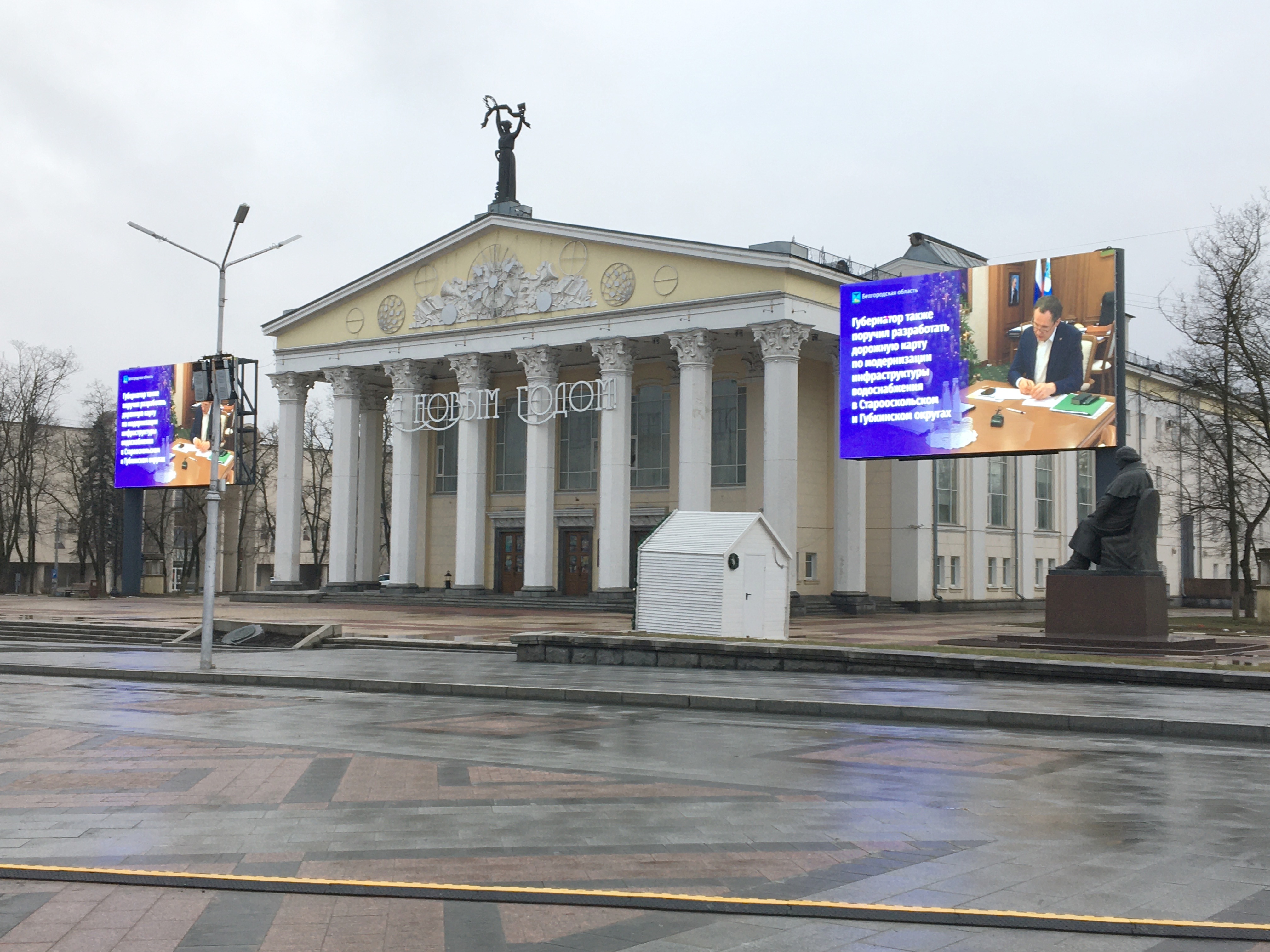 В будние дни в Белгороде пустынно, но по выходным проходят ярмарки, площади украшены. Перед зданием областной администрации еще сохранились приметы новогодних праздников: ель, громадные снежинки, аккуратный Дед Мороз, неработающие ярмарочные ларьки и два больших экрана, где крутят новости достижений белгородского правительства, от минкульта до минсельхоза.