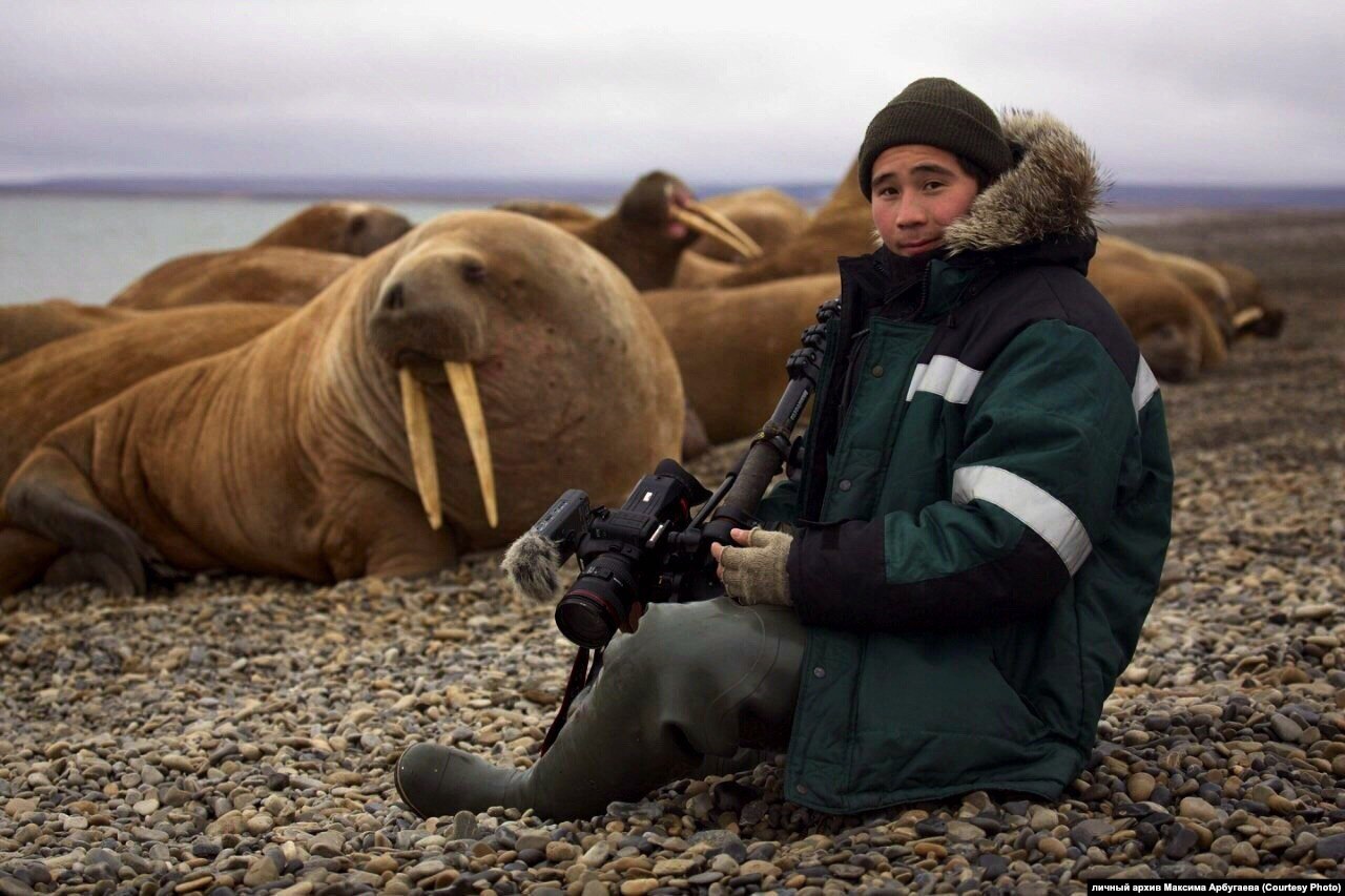 Однажды они высадились у мыса Сердце-Камень, в 12 километрах от Энурмино. На песчаном берегу стоял одинокий деревянный домик. Местные охотники на китов и моржей рассказали, что сюда уже больше десяти лет на несколько месяцев приезжает молодой ученый Максим Чакилев, который ведет наблюдение за крупнейшим на Земле лежбищем моржей – около ста тысяч животных мигрируют из-за глобального таяния льдов и выбираются на сушу, чтобы отдохнуть.