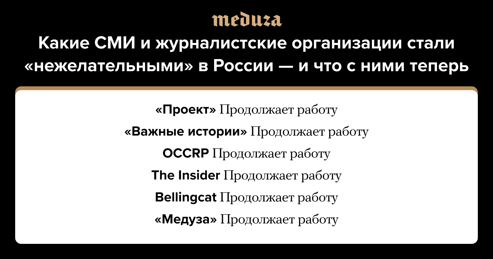 Медузе, как говорится, поддержка. Ну и наконец-то можно сказать «прощай» ее иноагентской плашке, которую ребята продолжали педантично ставить, несмотря ни на что.