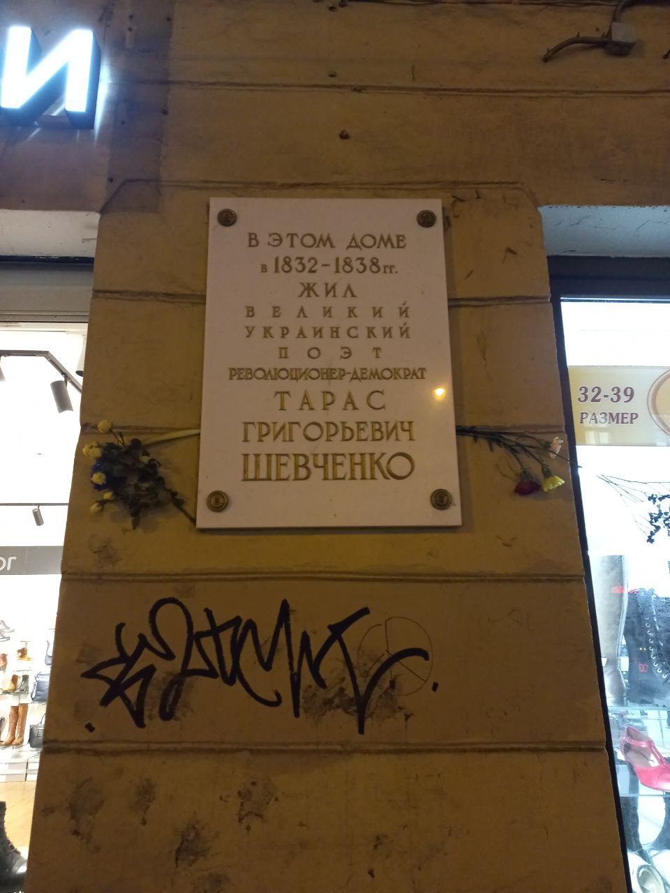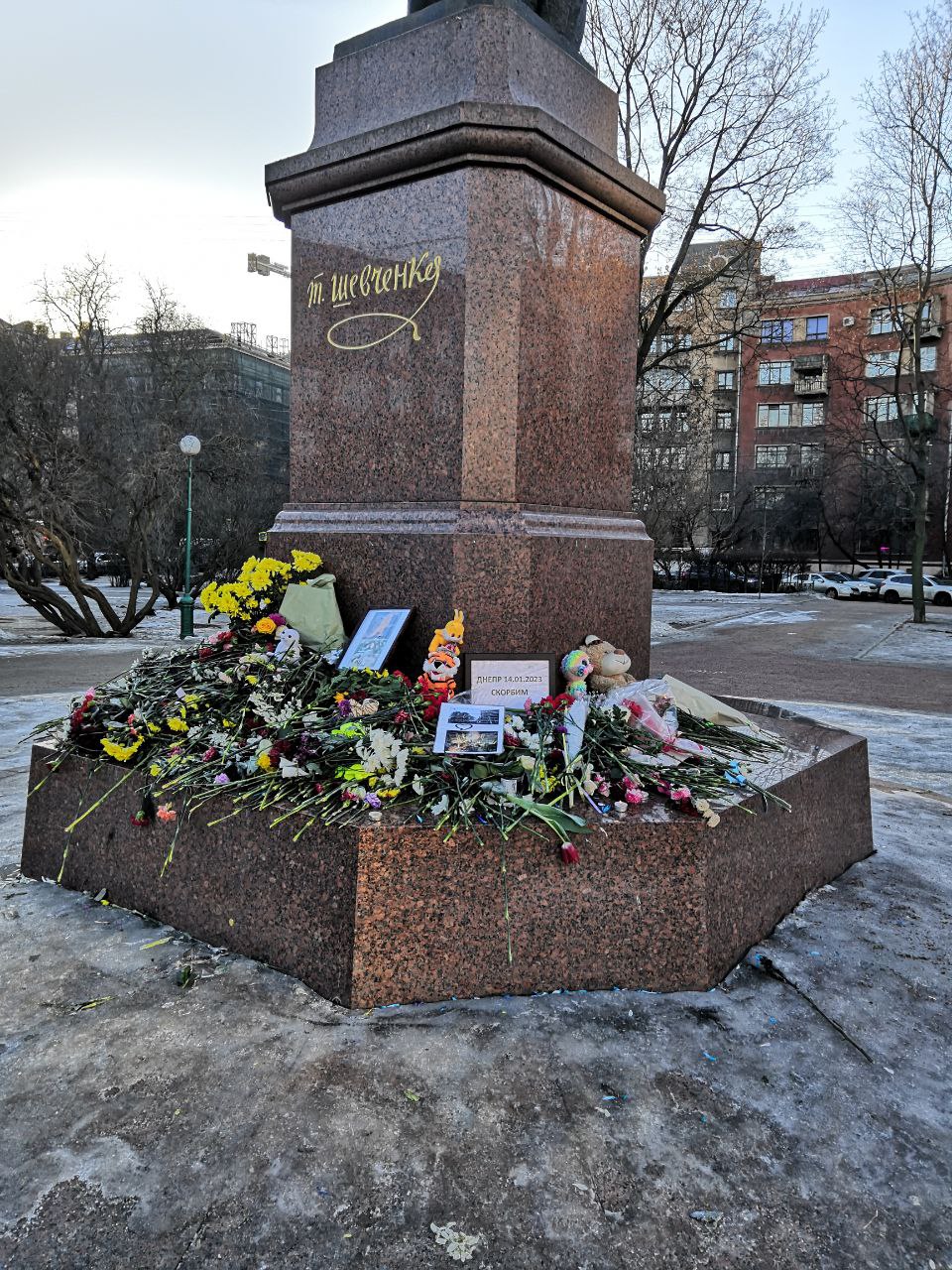 Тогда же, 25 января, два букета появилось у мемориальной таблички Тарасу Шевченко. Она установлена на доме на Загородном проспекте, где поэт жил с 1832 по 1838 год.