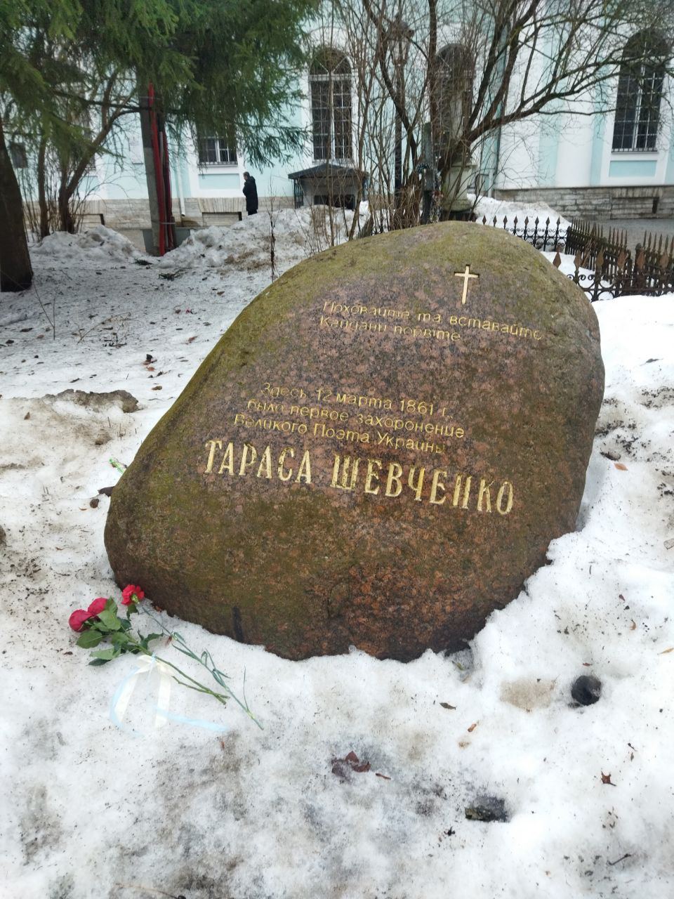 18 января жители Петербурга возложили три розы к месту первоначального захоронения Тараса Шевченко на Смоленском кладбище. Здесь его похоронили в марте 1861 года. Через два месяца тело поэта перезахоронили в Украине, как он сам завещал.