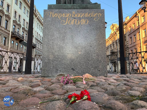21 января издание Sota опубликовало фотографии букетов у памятника Николаю Гоголю на Малой Конюшенной улице.