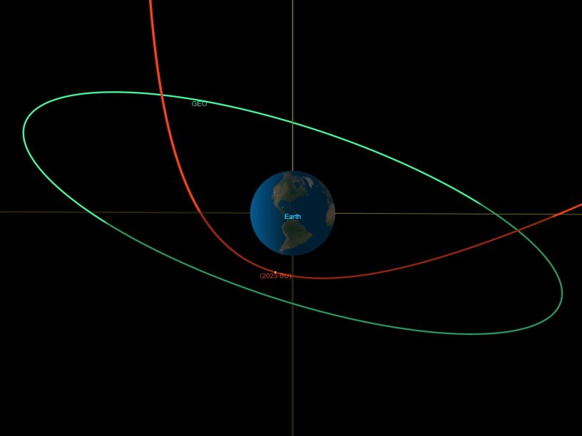 Астероид 2023 BU был открыт в прошлую субботу. Его размер — от 3,5 м до 8,5 м. Первым его заметил тот же крымский астроном-любитель Геннадий Борисов, который открыл в 2019 году межзвездную комету. В течение нескольких дней астрономы всего мира провели десятки наблюдений, что позволило уточнить траекторию движения астероида. Его путь будет резко изменен притяжением Земли. По данным NASA, вместо того чтобы обращаться вокруг Солнца каждые 359 дней, как раньше, теперь астероид будет двигаться по вытянутой орбите с периодом обращения 425 дней.