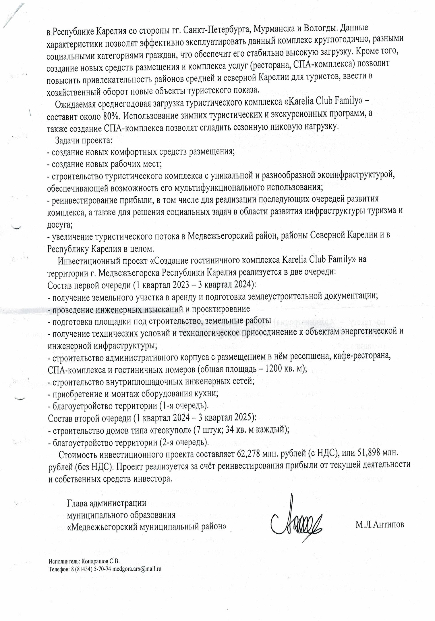 Глава администрации Медвежьегорского района М. Л. Антипов с местными депутатами встречаться отказался, на все вопросы ответил однозначно: «Второго февраля будет встреча с инвесторами проекта, вот они вам все и расскажут, на все ваши вопросы и ответят».