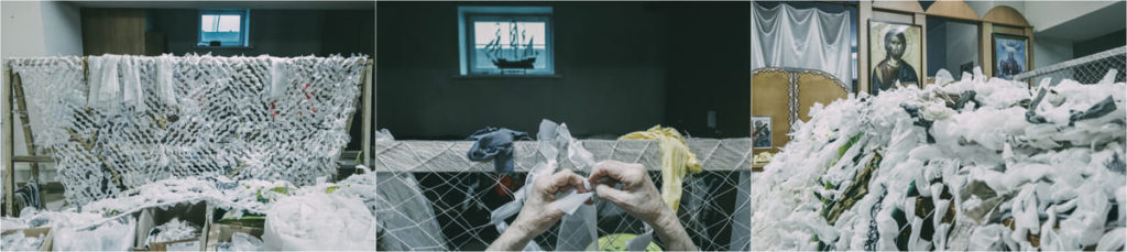 «Глава прихода отец Василий благословил нас на плетение сетей и разрешил нам занять трапезную», — объясняет она.