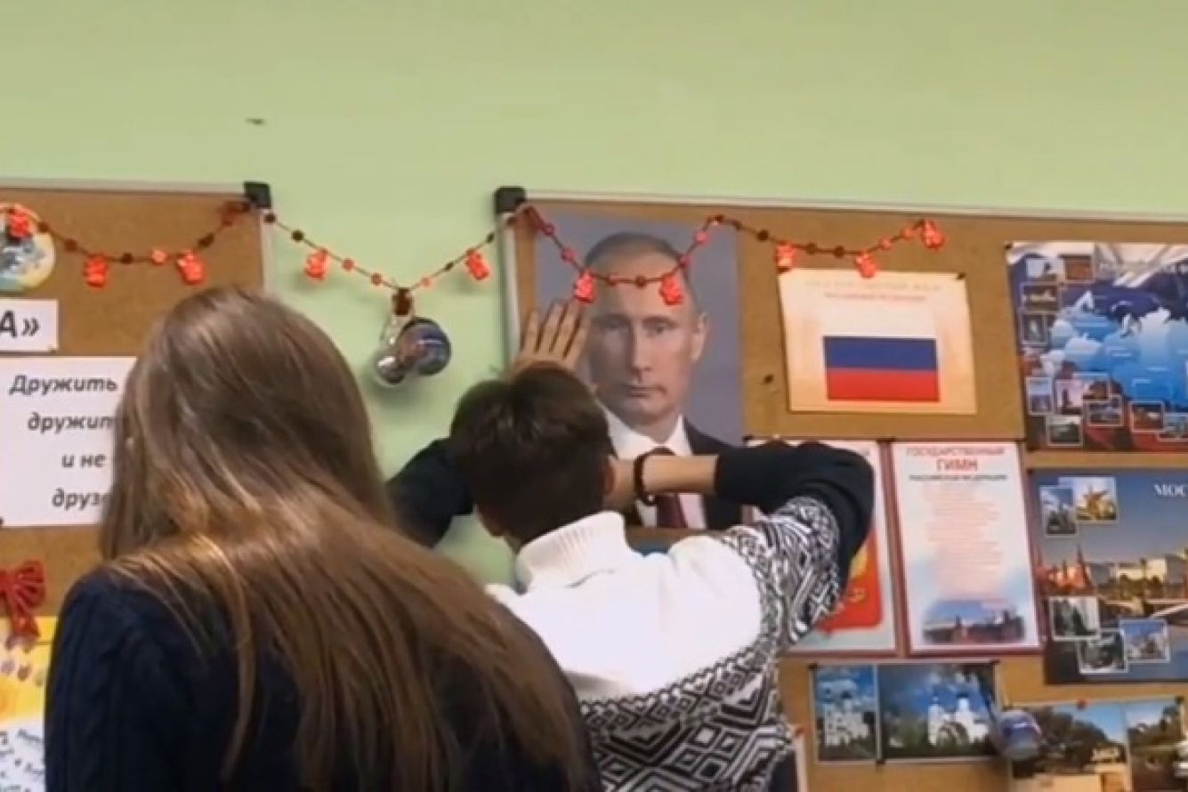 Это касается и политики. Отдельная главка посвящена последним публичным протестам в РФ, происходившим 23 января 2021 года, — акциям в поддержку чрезвычайно популярного у молодежи лидера оппозиции Алексея Навального. Дети боятся идти на площадь, но преодолевают сомнения и страх. Одна девочка со злой иронией рассказывает на камеру о своем первом аресте. Другой мальчик лежит на матрасе под небом, с которого падает снег, и рассказывает, как отец-полицейский угрожал выгнать его из дома, если он посмеет пойти на митинг. Школьники снимают со стены портрет президента («Ваше место у параши»), пишут на доске «Путин — вор», саркастически снимают из-под парты суконные речи директрисы, распинающей учеников за кощунство.
