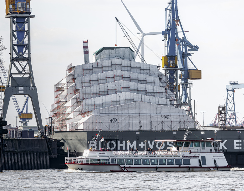 Суперъяхта Dilbar в порту Гамбурга. После нескольких недель расследования Федеральное ведомство уголовной полиции Германии нашло настоящего владельца яхты, им оказалась сестра Алишера Усманова. Фото: Markus Scholz / dpa / Global Look Press