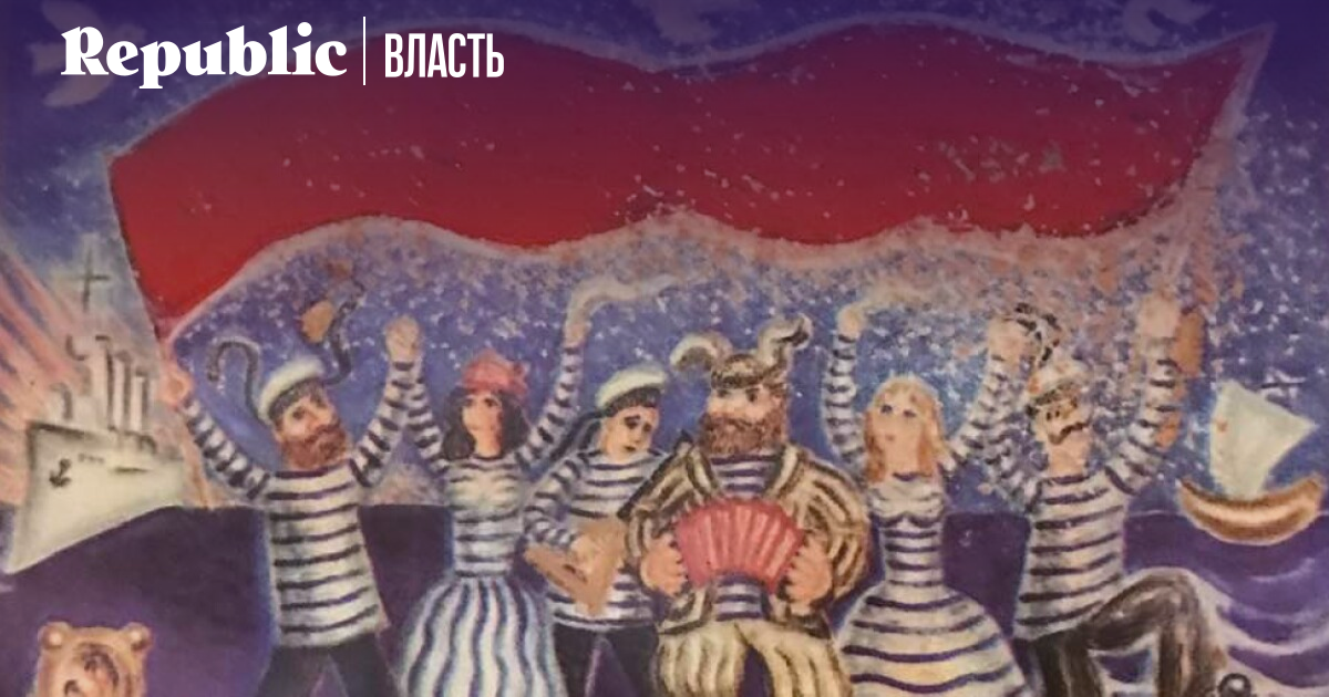 За цитатой — история: журнал «Декоративное искусство» к собственному 65-летию проводил в московском Музее декоративно-прикладного искусства выставку «Открытика», посвященную, как нетрудно догадаться, поздравительным открыткам. Вот и Шагина попросили нарисовать — специально для вернисажа — картину-открытку. У митьков есть свой собственный, давно изобретенный праздник — День тельняшки. Об этом празднике работа Шагина. Все, как положено: Нева, «Аврора», кот, водолаз и митьки. И еще транспарант с лозунгом — «Митьки никого не хотят победить». Лозунгу лет сорок. Никакого отношения к сегодняшним реалиям он, разумеется, не имеет.
