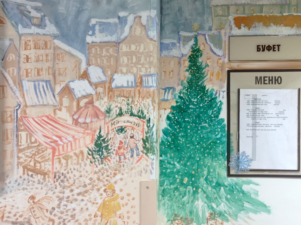 В отделении много детских сюжетов: «Мы подумали, что детская тема всегда хороша для людей старшего возраста, — объясняет Юлиана. — Чадолюбие их подпитывает и поддерживает, и конечно, им не хватает возни с детьми. И вообще пожилой человек с удовольствием вспоминает детство — кажется, то, что было давно, по времени ближе, чем вчерашний день».