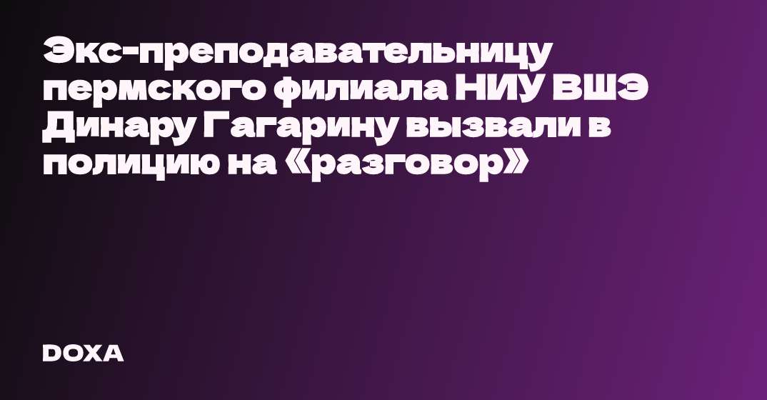Экс-преподавательницу пермского филиала НИУ ВШЭ Динару Гагарину вызвали в полицию на «разговор», сообщает сама профессорка.